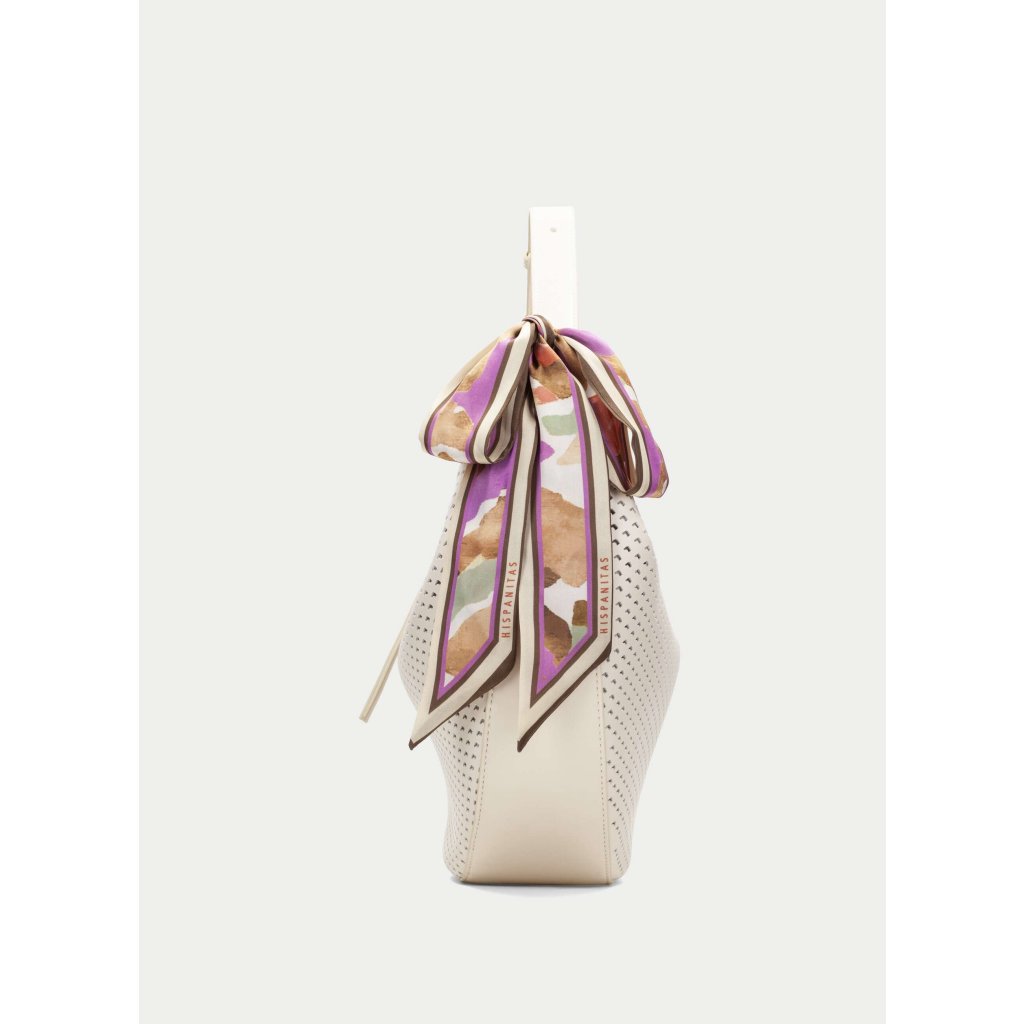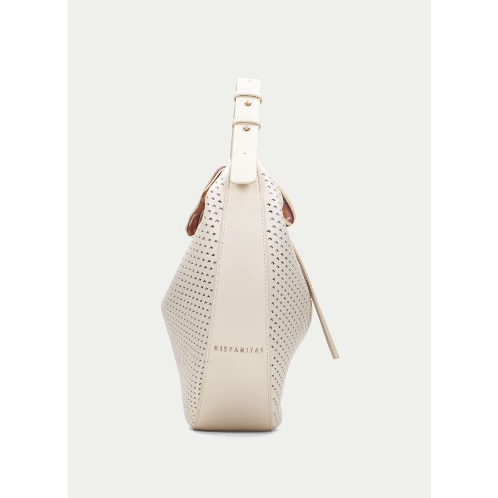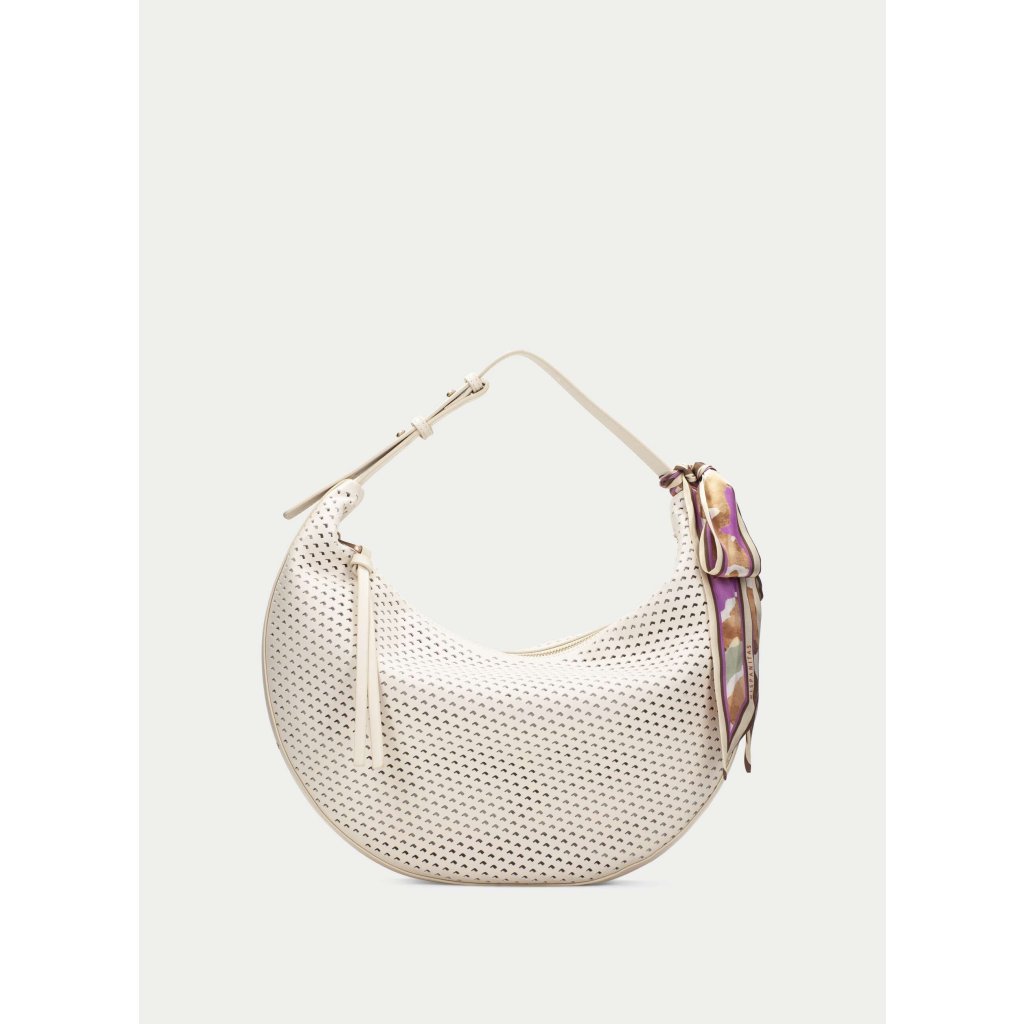 Jemný krémový odstín působí čistě, svěže a luxusně. Díky němu se kabelka snadno kombinuje a stane se spolehlivým základem vašeho každodenního stylu. To, co ji ale dělá opravdu výjimečnou, je perforovaný vzor, který dodává kabelce lehkost, strukturu a moderní charakter. Typická hobo silueta s měkkým, zaobleným tvarem krásně sedí na rameni a přirozeně kopíruje pohyb těla. Díky větším rozměrům nabízí dostatek prostoru pro vše, co během dne potřebujete – od peněženky po drobnosti, které chcete mít vždy po ruce.
