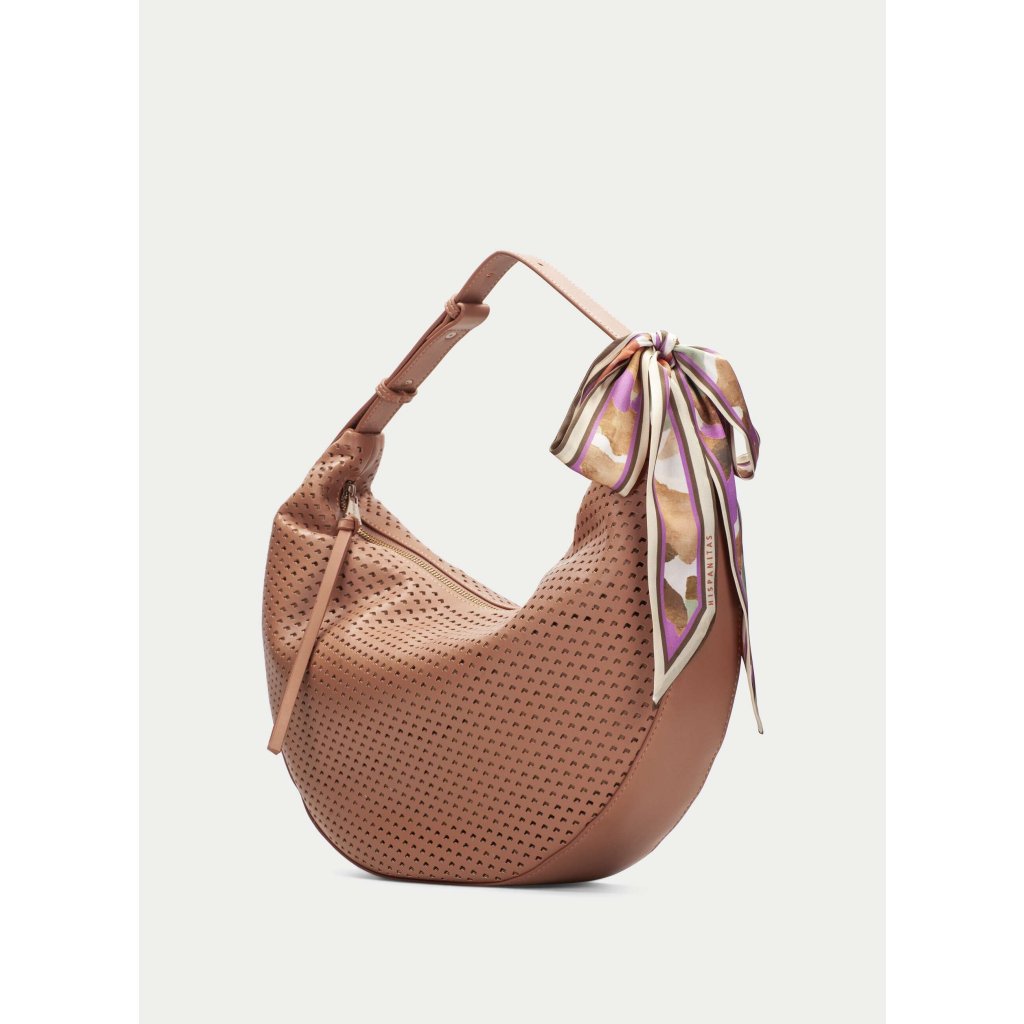 Typická hobo silueta krásně sedí na rameni a přirozeně kopíruje pohyb těla. Větší formát nabízí dostatek prostoru pro vše, co během dne potřebujete. Kabelka je vyrobena z kvalitního PU materiálu, který je lehký, odolný a snadný na údržbu. Zapínání na zip zajišťuje bezpečí, zatímco vnitřní kapsa na zip pomáhá udržet pořádek. Nechybí ani podšívka s logem Hispanitas, která podtrhuje prémiové zpracování.
