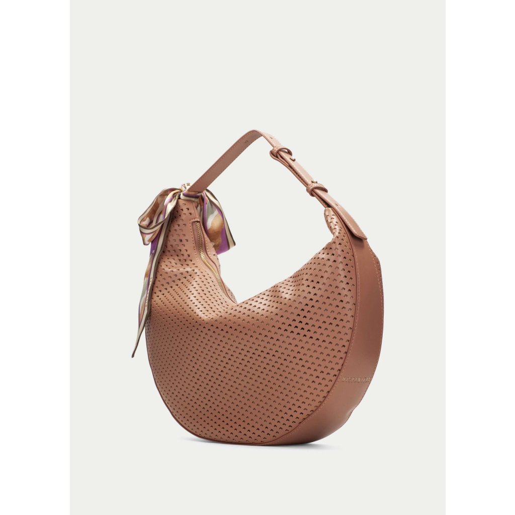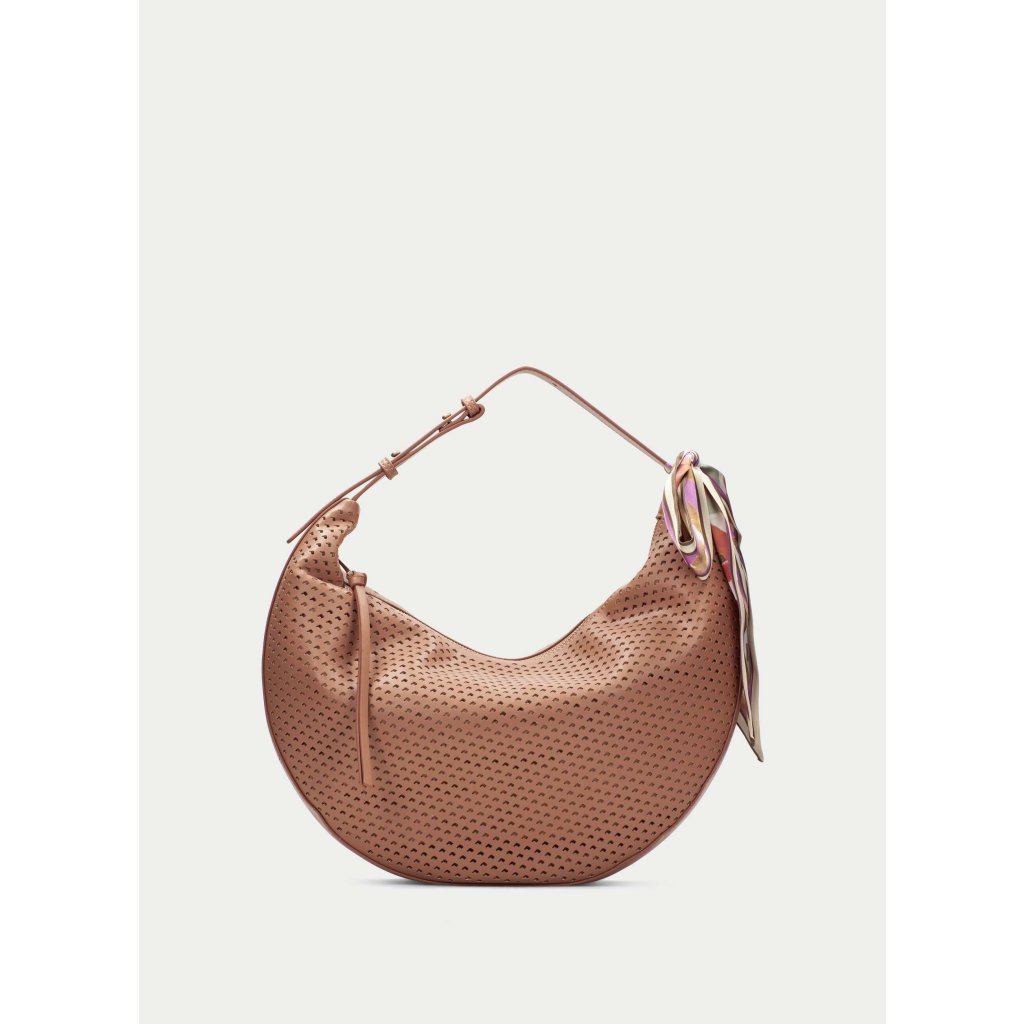 Barva se pohybuje v jemném mandlovém tónu s teplým podtónem, který působí přirozeně, sofistikovaně a velmi žensky. Skvěle ladí s béžovou, krémovou, denimem i přírodními materiály a krásně funguje napříč sezónami. Dominantním prvkem je perforovaný vzor, který kabelce dodává lehkost, strukturu a moderní vzhled. Díky tomu nepůsobí těžce, ale naopak svěže a stylově.