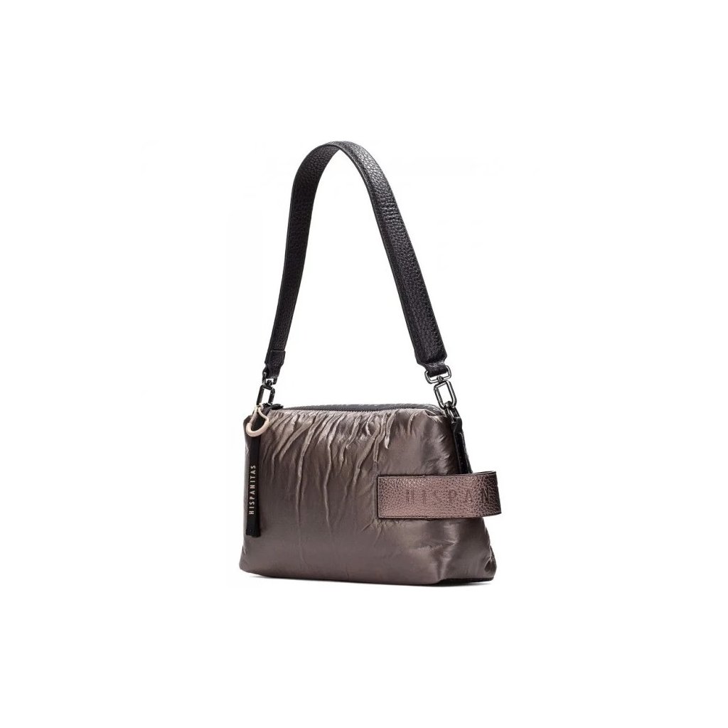 Vstupte do nové sezóny s kouskem, který nezůstane bez povšimnutí. Metalická kabelka Hispanitas z kolekce Podzim/Zima 2025 je perfektní kombinací elegance, praktičnosti a současného stylu. Jemně lesklý povrch s efektem mačkaného nylonu působí sofistikovaně a zároveň přirozeně.