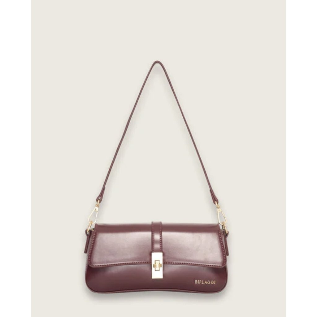👜 Elegantní kabelka přes rameno Loren v odstínu bordeaux od značky Bulaggi je opravdový módní šperk. Svým podlouhlým tvarem a hladkým lesklým povrchem působí sofistikovaně a decentně zároveň. Díky zlatému otočnému zapínání na přední straně a krátkému popruhu dodá vašemu outfitu nádech francouzské elegance.