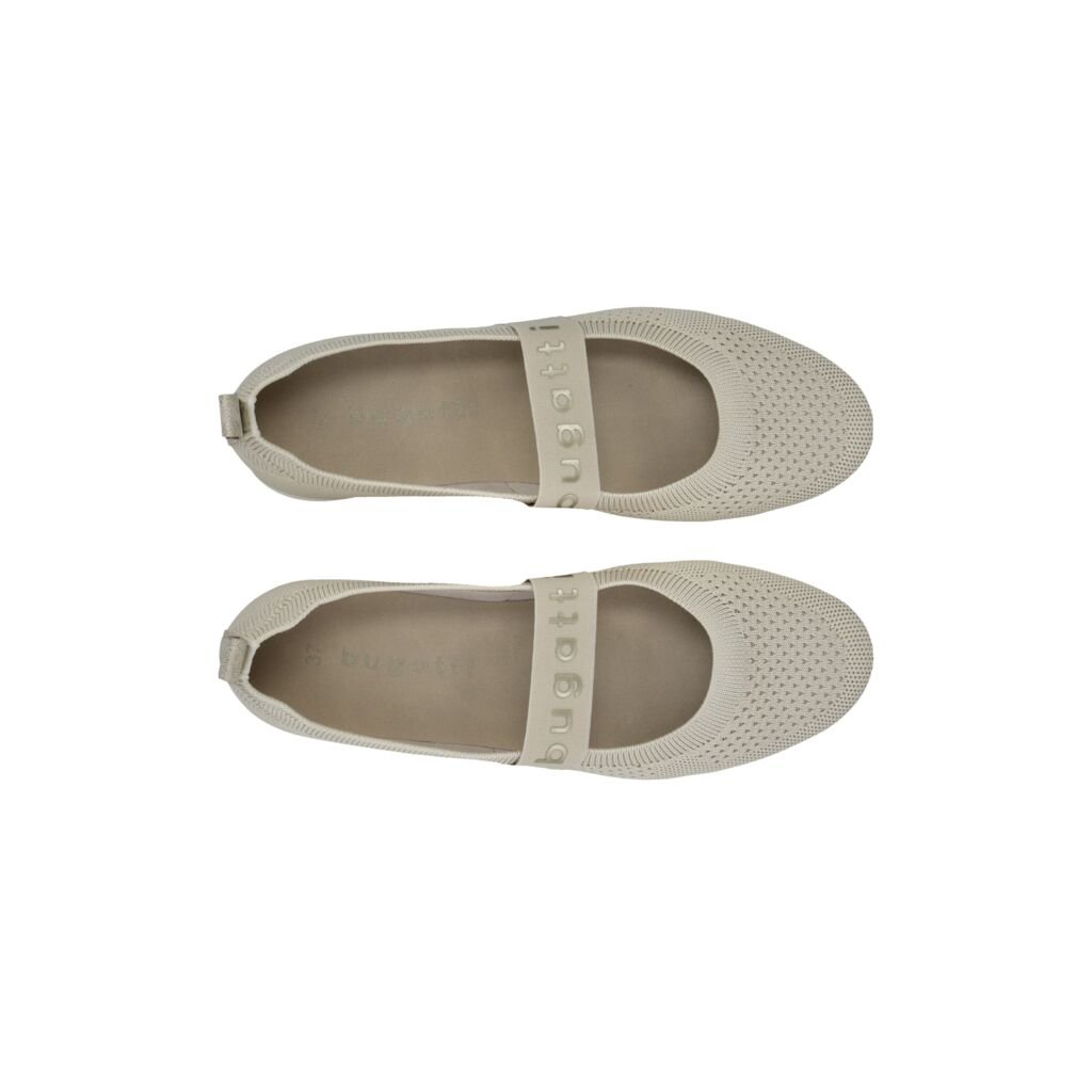 Lehké béžové baleríny Bugatti z prodyšného textilu s pružným páskem přes nárt a flexibilní podešví. Pohodlí na každý den – obujte je a vyrazte.