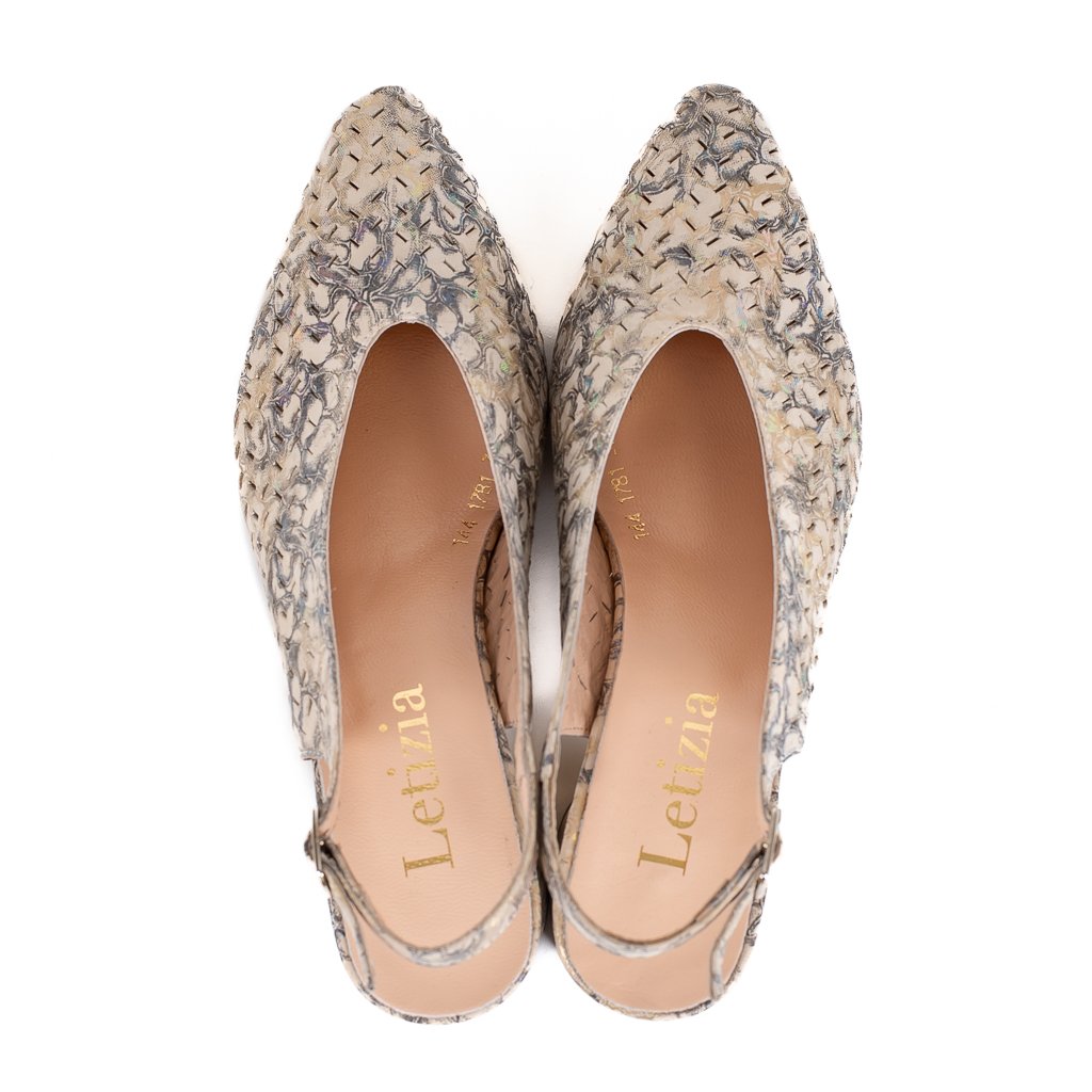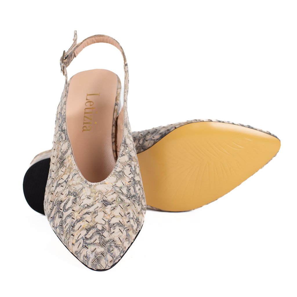 Kožené lodičky Letizia v béžovém tónu s metalickým nádechem jsou krásnou volbou pro chvíle, kdy chcete působit přirozeně, elegantně a s citem pro detail. 👠🤍