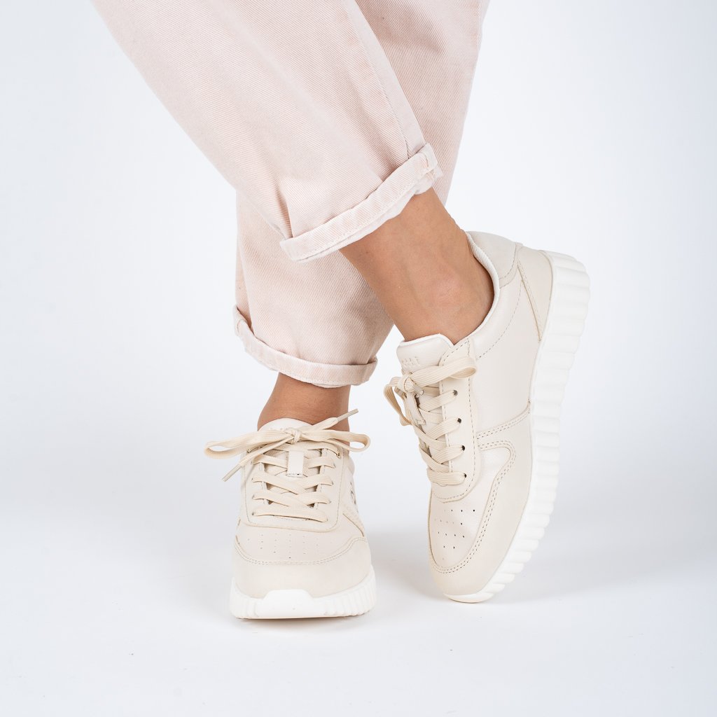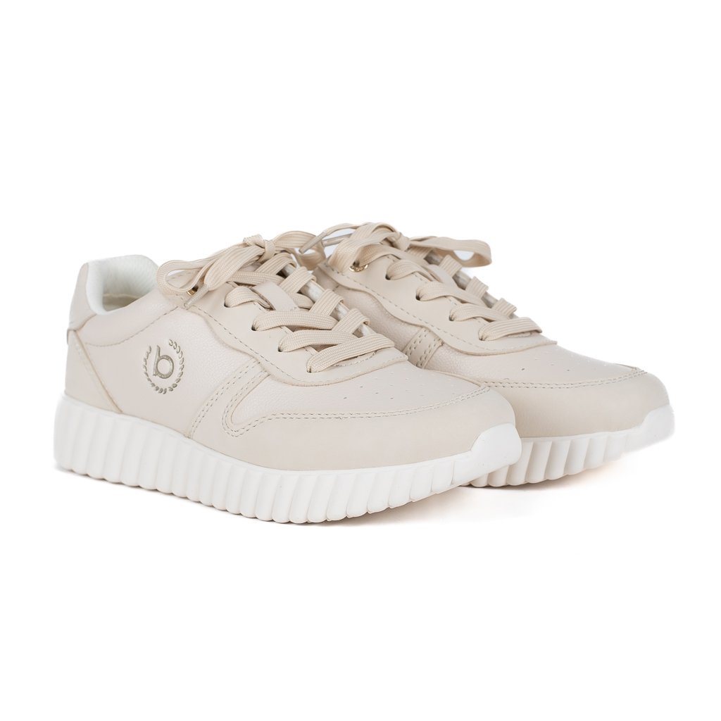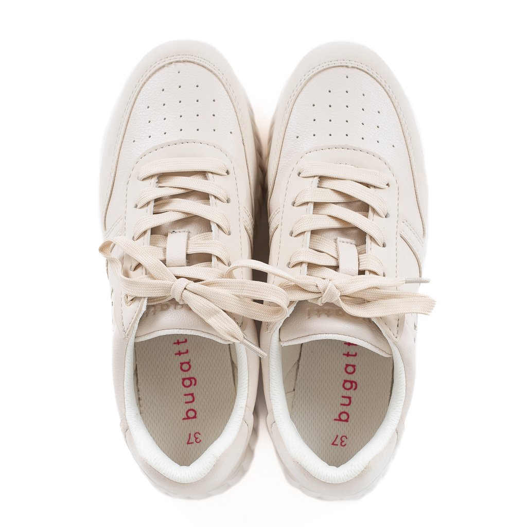 Lehké dámské tenisky Bugatti v světlé béžové barvě. Syntetický svršek, podešev 3 cm, pohodlné boty na každý den.