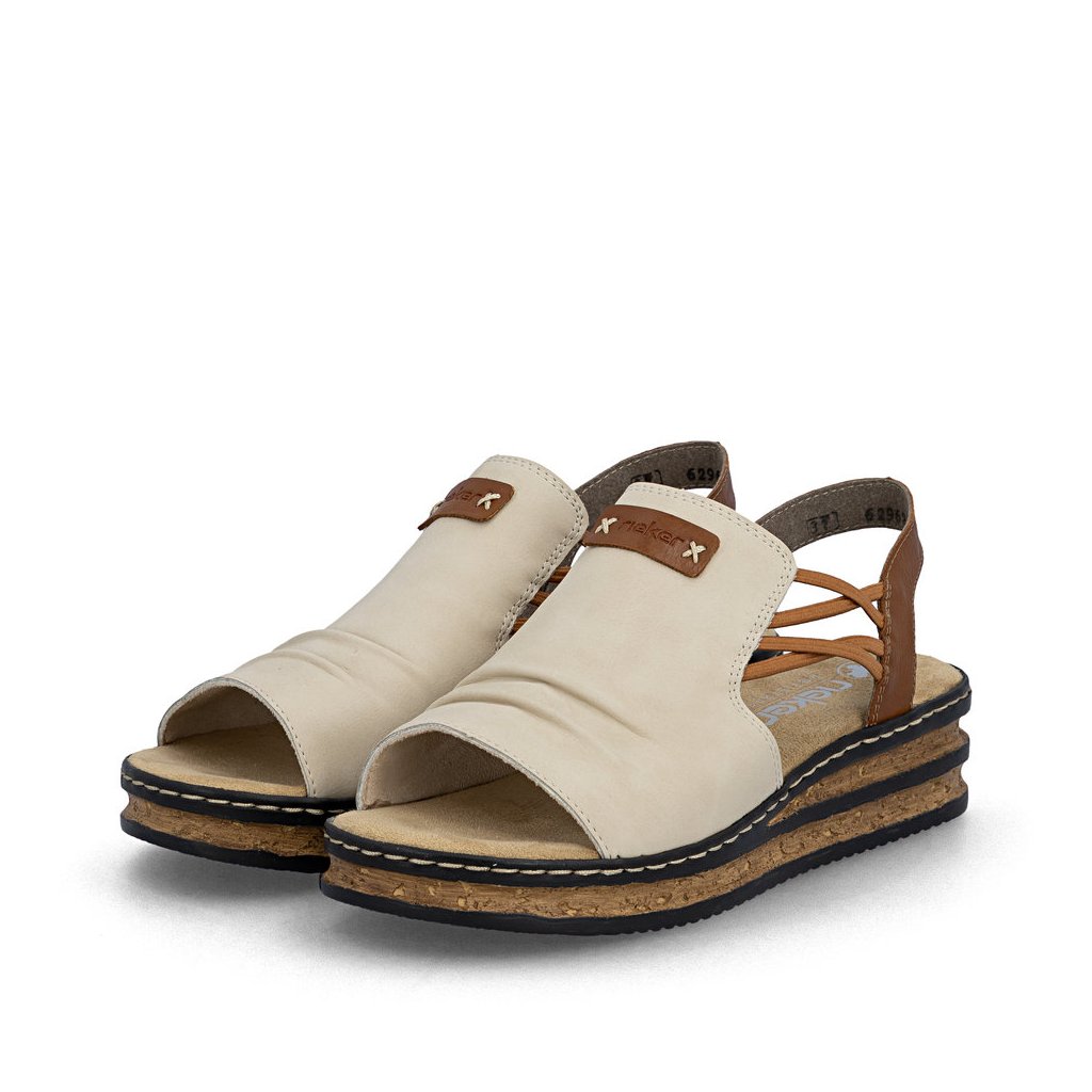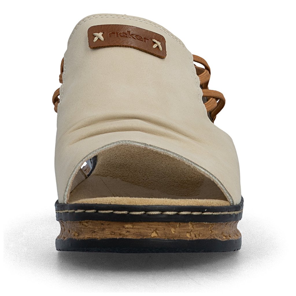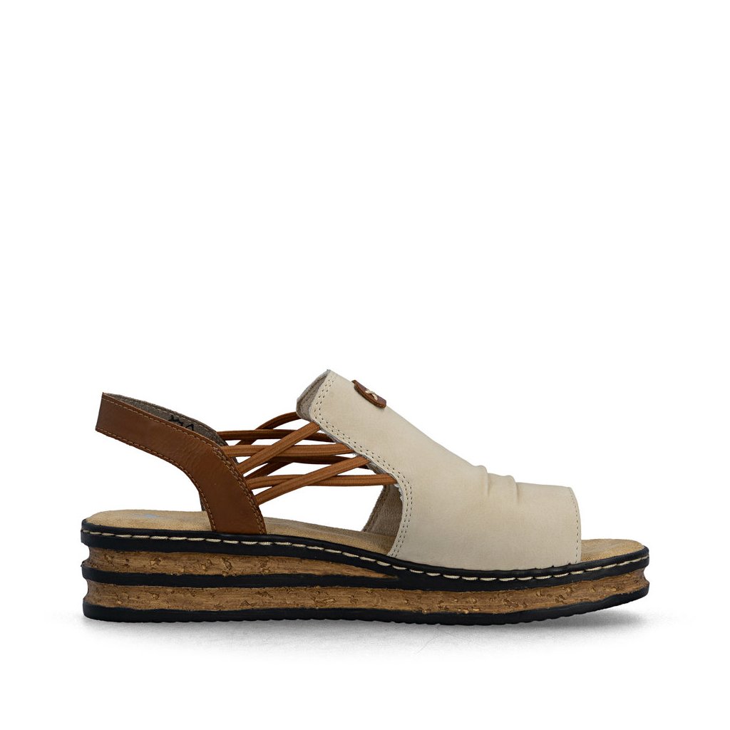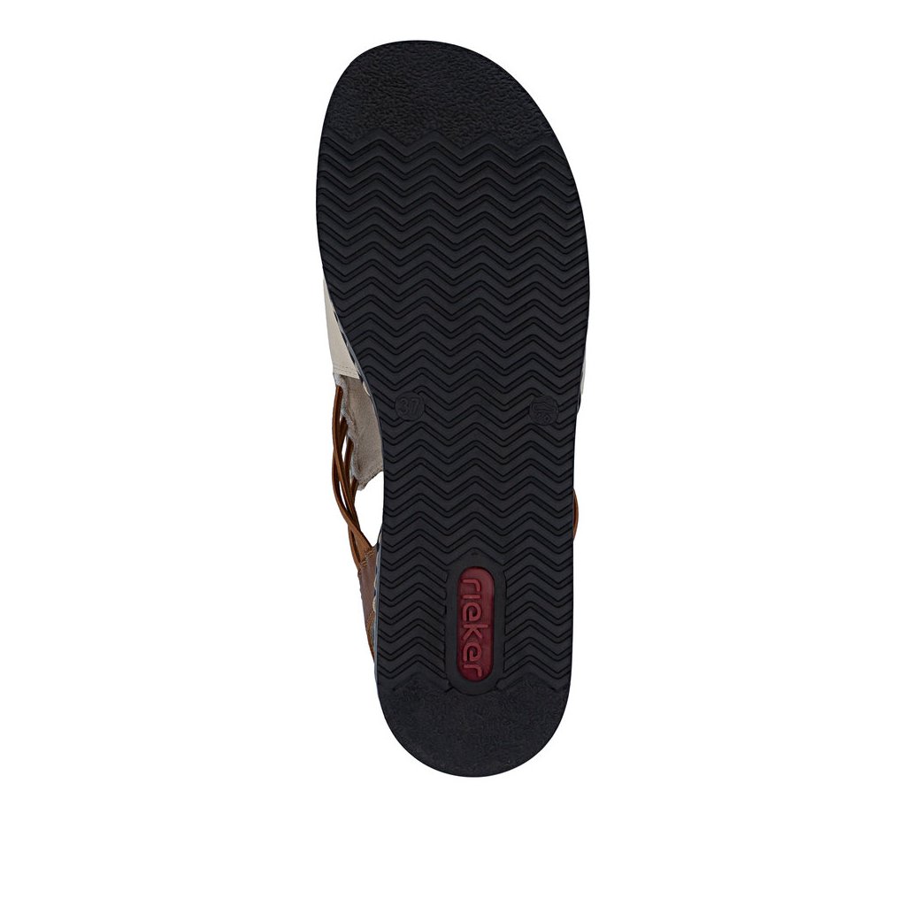 Dámské béžové sandály Rieker na klínku spojují pohodlí, lehkost a přirozený styl. Kombinace jemných přírodních tónů krásně ladí s letním šatníkem – zejména se lnem, béžovou, krémovou nebo hnědou.