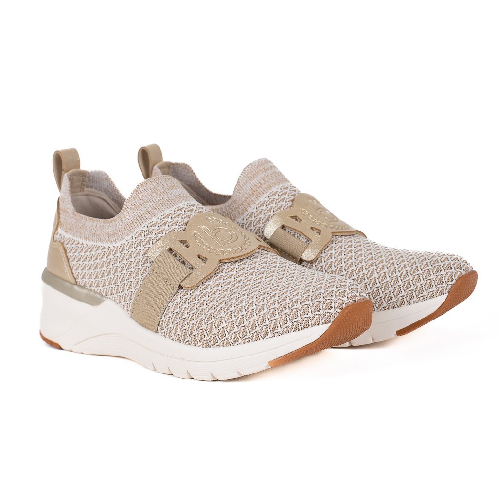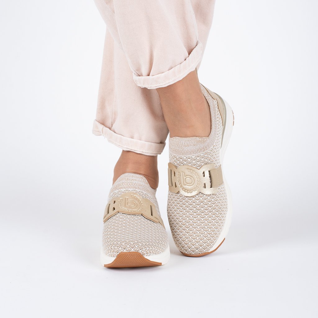 Dámské béžové textilní tenisky se zlatými prvky Bugatti