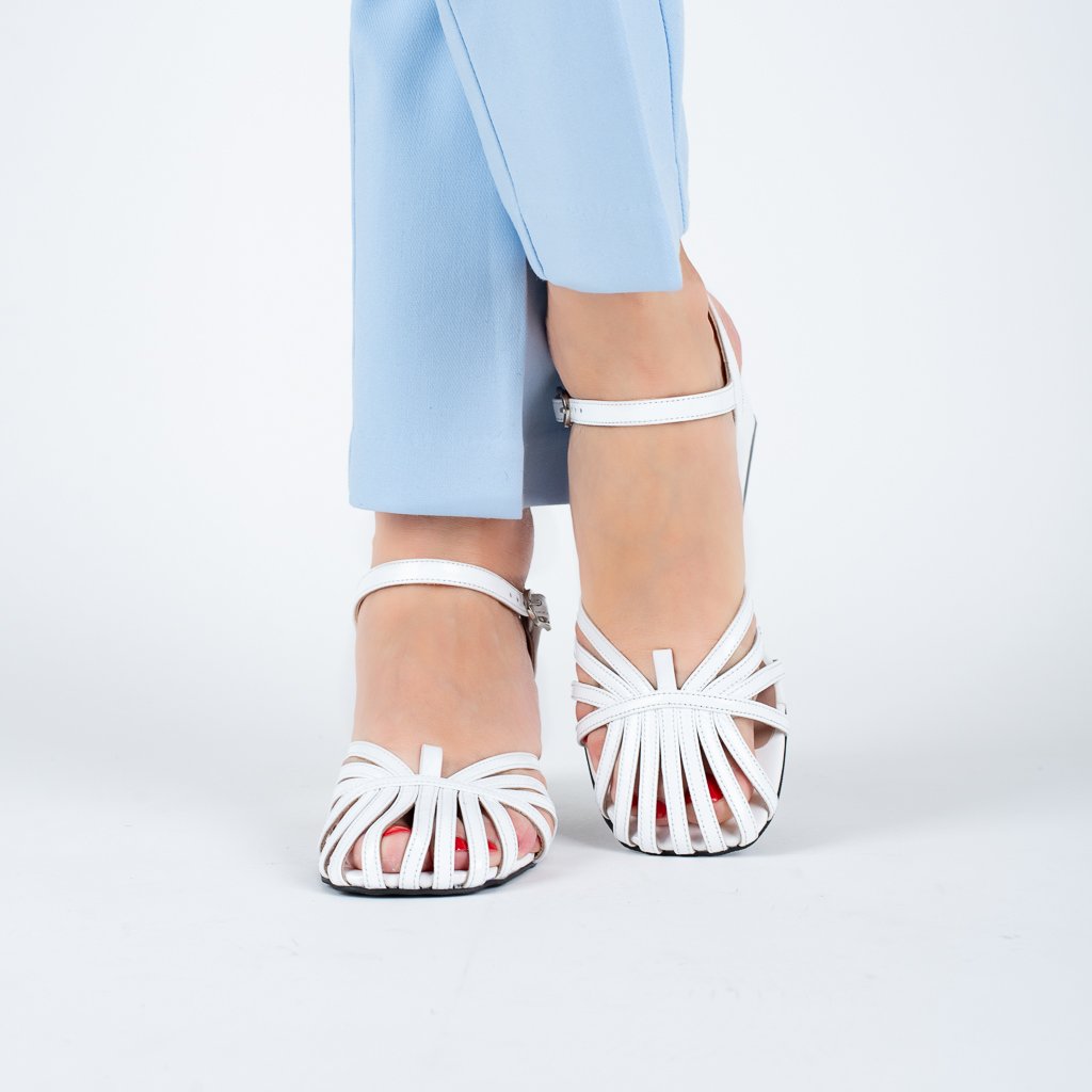 Bílé kožené sandály Letizia na podpatku působí lehce, čistě a velmi žensky. 🤍 Jemně vedené pásky na nártu vytvářejí elegantní kresbu, která nohu krásně obepne a dodá celému modelu vzdušnost i rafinovanost. Bílá barva podtrhuje svěží charakter sandálů a skvěle se hodí k letním i slavnostnějším outfitům.
