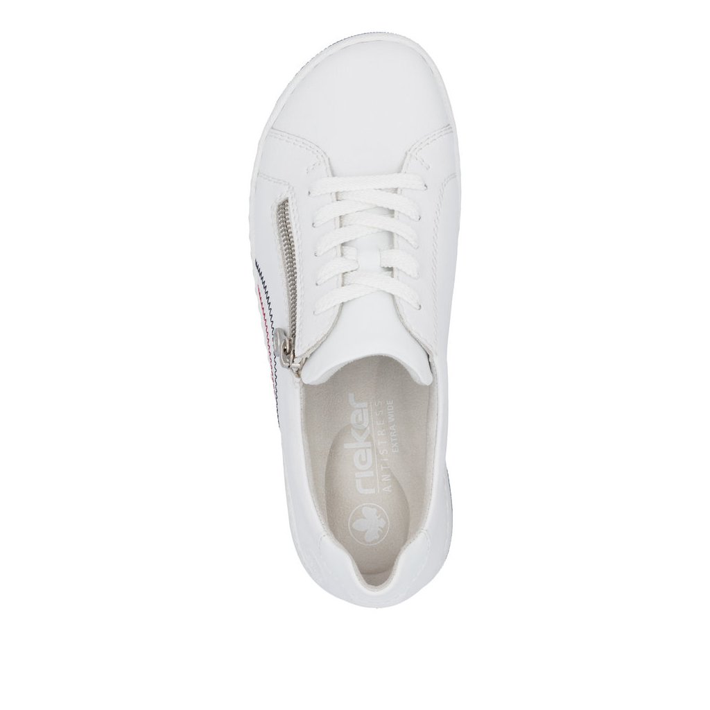 Dámské bílé kožené polobotky v širším střihu Rieker 42424-80