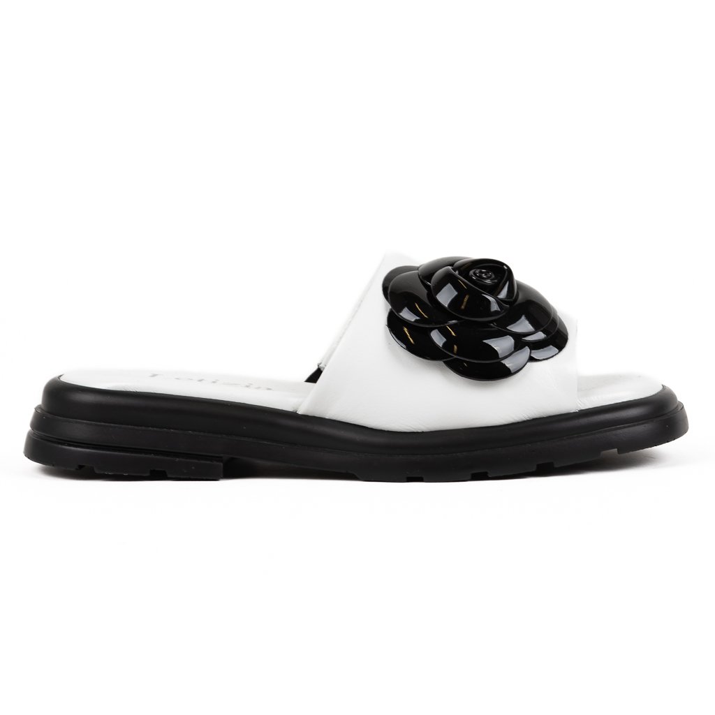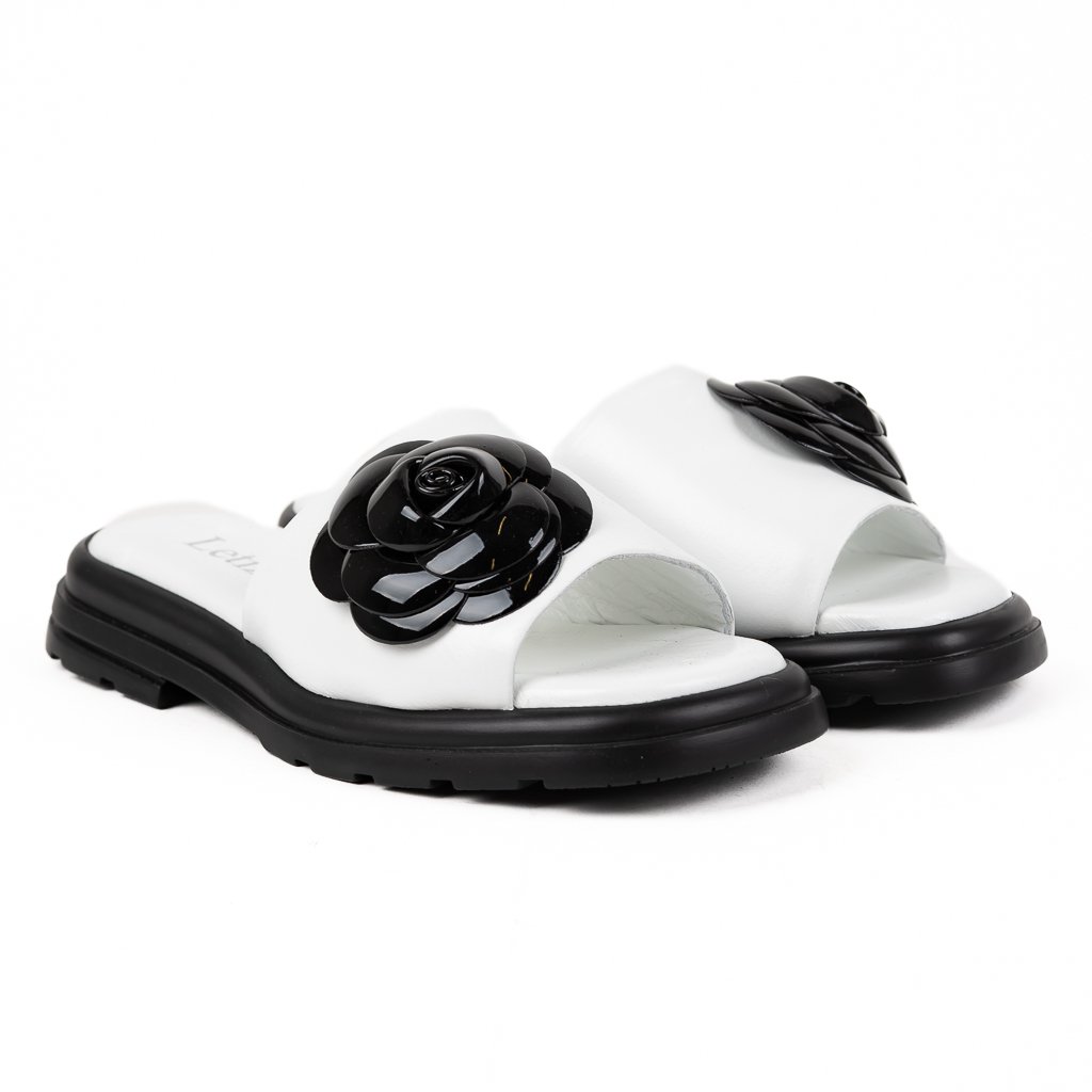 Dámské bílé nazouváky s černou květinou