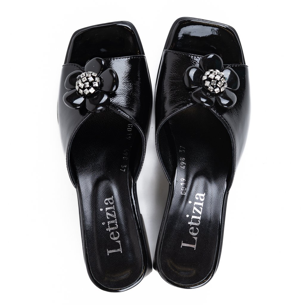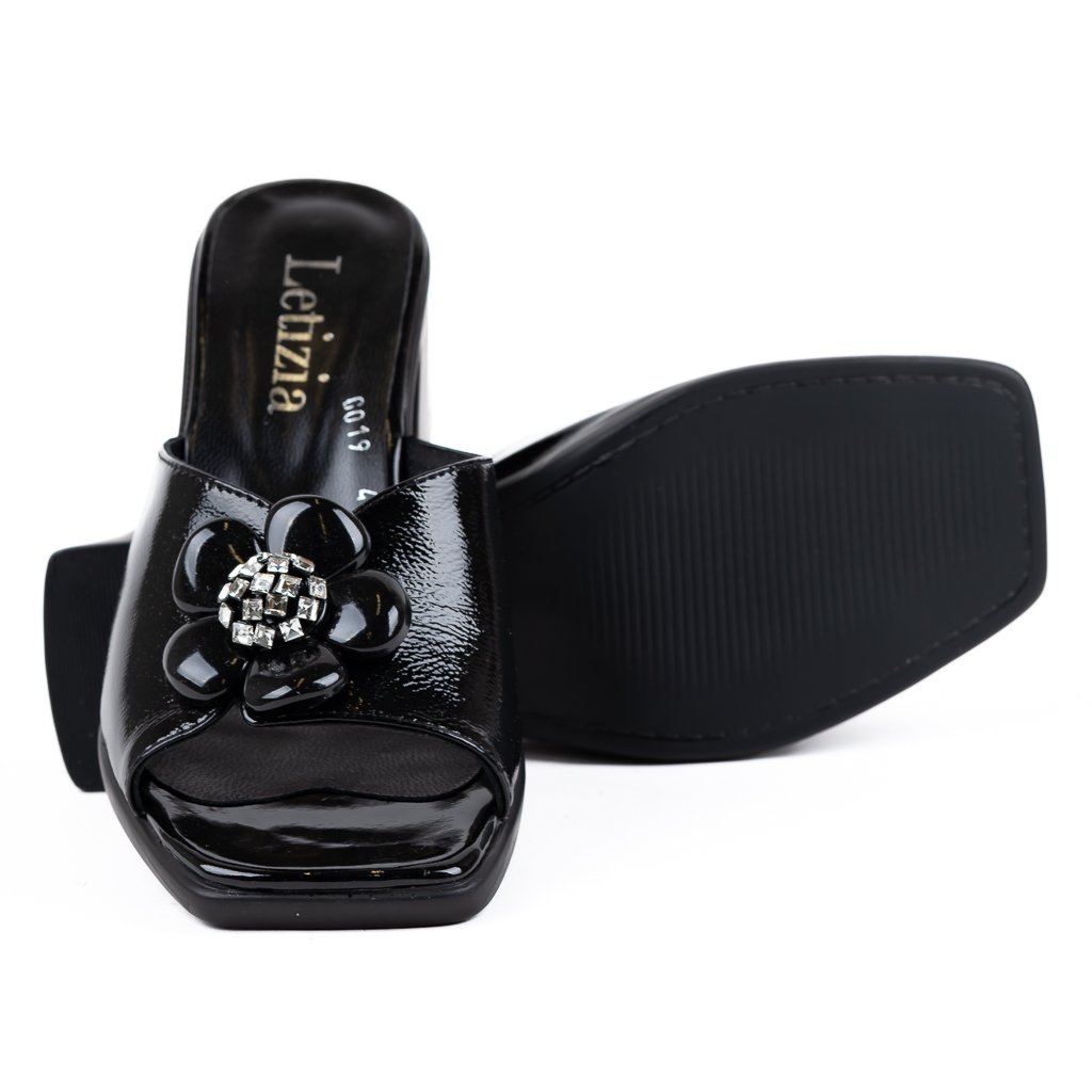 Nadčasový design těchto nazouváků je doplněn o jemnou, ale výraznou ozdobu v podobě květiny umístěné na nártu, která dodává obuvi ženský a sofistikovaný vzhled.