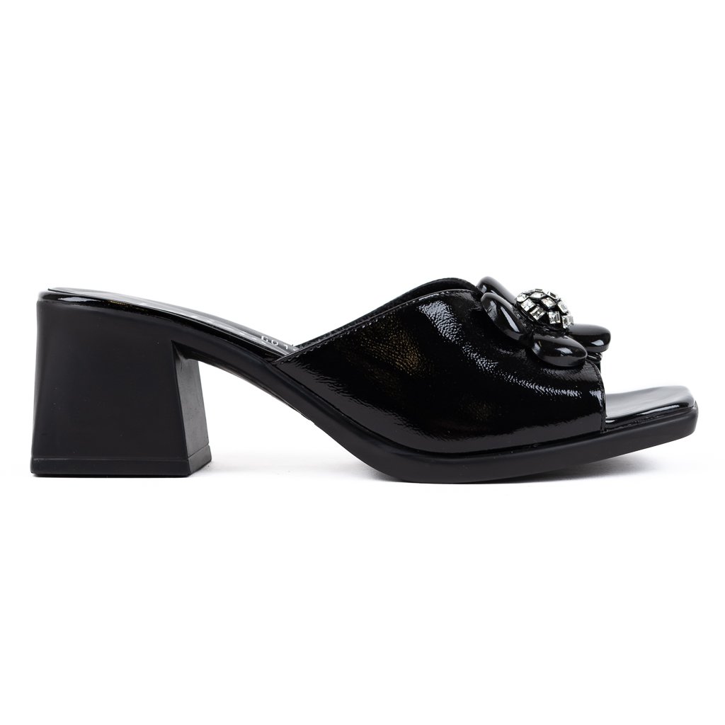 Dámské černé elegantní nazouváky z lakované kůže