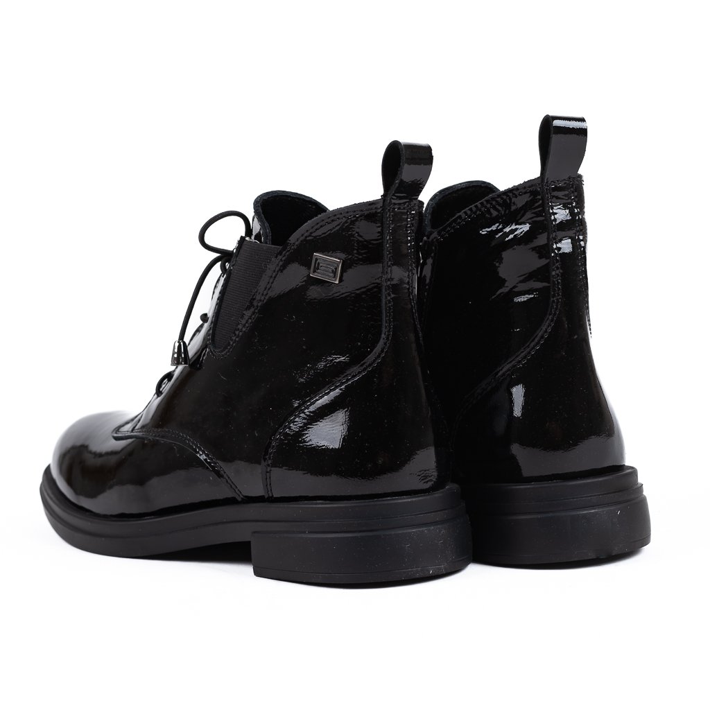 Tyto černé kotníčkové boty z lakované kůže jsou ideální volbou pro ženy, které hledají stylovou, pohodlnou a praktickou obuv. Díky svému elegantnímu designu a funkčním prvkům se tyto boty snadno stanou vaším oblíbeným kouskem pro různé příležitosti.