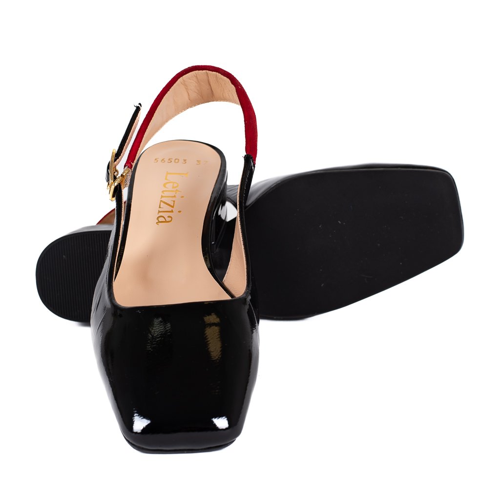 Dámské černé lakované lodičky Letizia s červeným páskem a hranatou špičkou