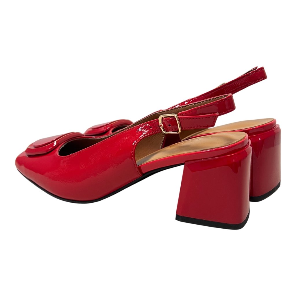 Luxusní červené lakované lodičky Epica s otevřenou patou a blokovým podpatkem. Výrazný elegantní model pro ženy, které chtějí být nepřehlédnutelné.