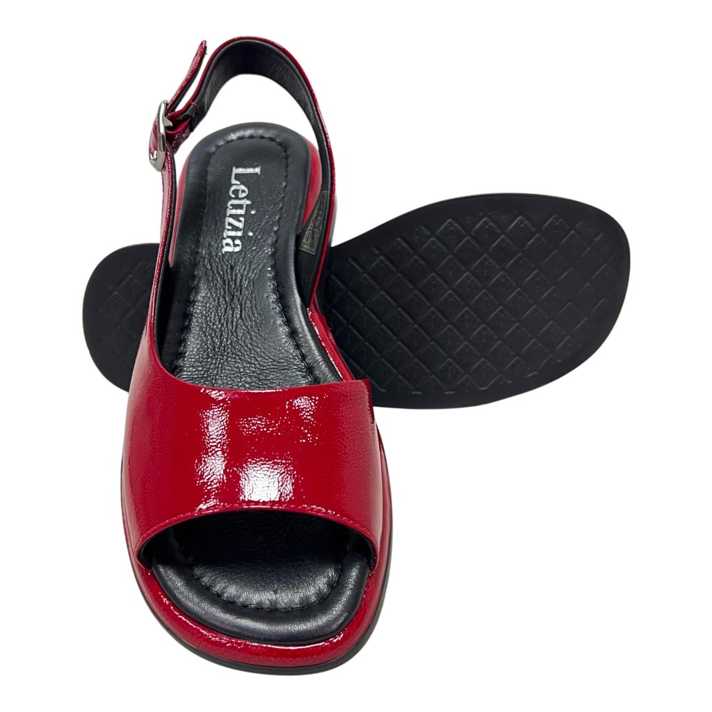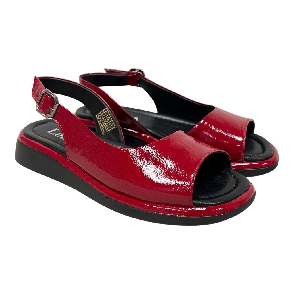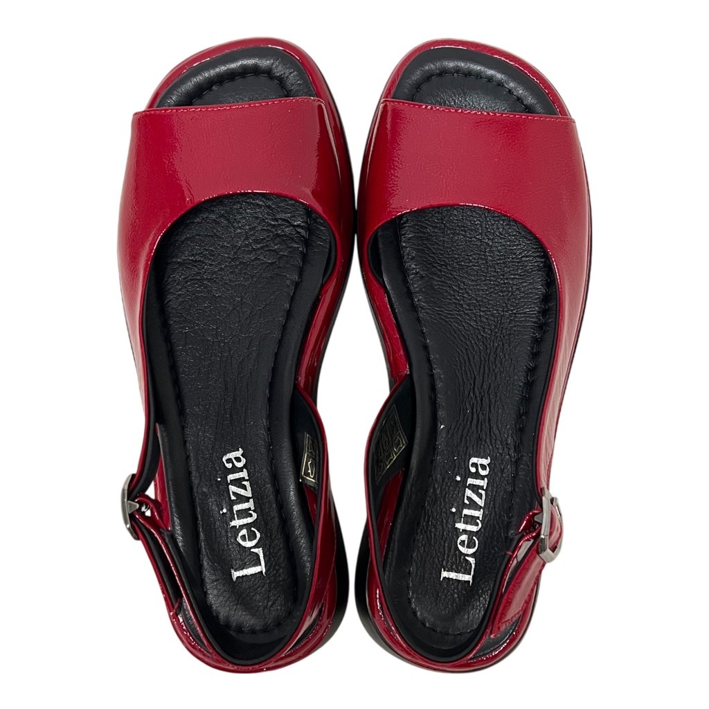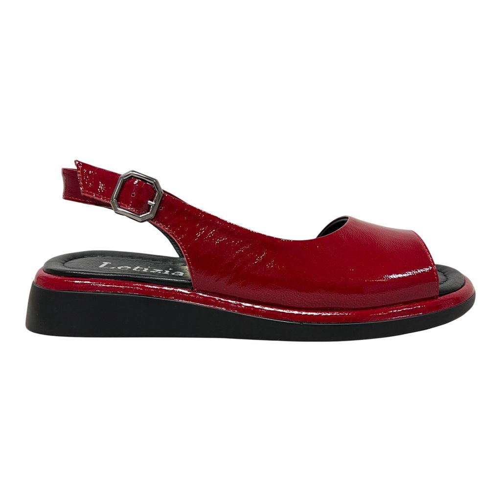 Červené lakované sandály Letizia jsou ideální volbou pro ženy, které chtějí dodat letnímu outfitu energii a šmrnc, ale nechtějí slevit z pohodlí. 👡✨ Lakovaný kožený svršek v sytě červeném odstínu působí sebevědomě a elegantně zároveň. Měkká kožená stélka zajistí příjemný došlap i při delším nošení a příjemná výška podešve podporuje stabilní, lehký krok po celý den. Nastavitelný pásek kolem paty pomáhá sandálům krásně sednout na noze. ☀️
