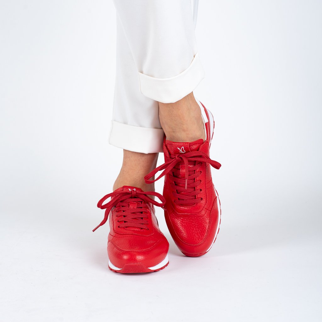 Dámské červené tenisky Caprice z jemné jelení kůže jsou přesně tím typem bot, které si zamilujete při prvním obutí. Měkký kožený svršek je neuvěřitelně poddajný, lehký a přizpůsobivý – pocitově jako druhá kůže. Červený odstín dodává teniskám energii a sebevědomý výraz.