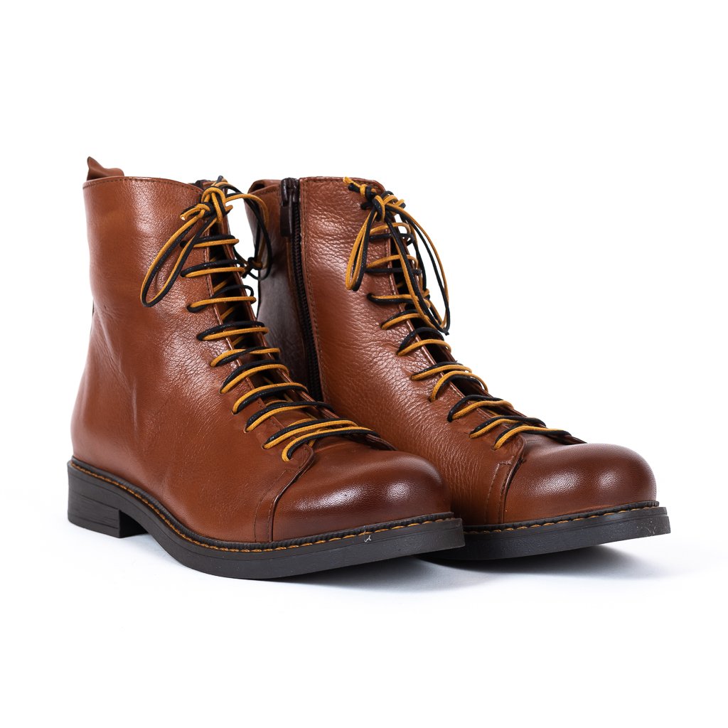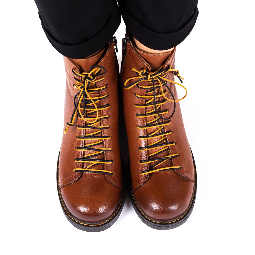 Dámské hnědé kotníčkové boty s dvojitou tkaničkou