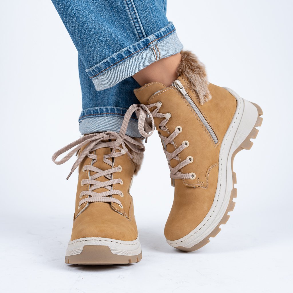 Dámské hnědé kotníčkové boty s kožíškem Rieker X9341-20