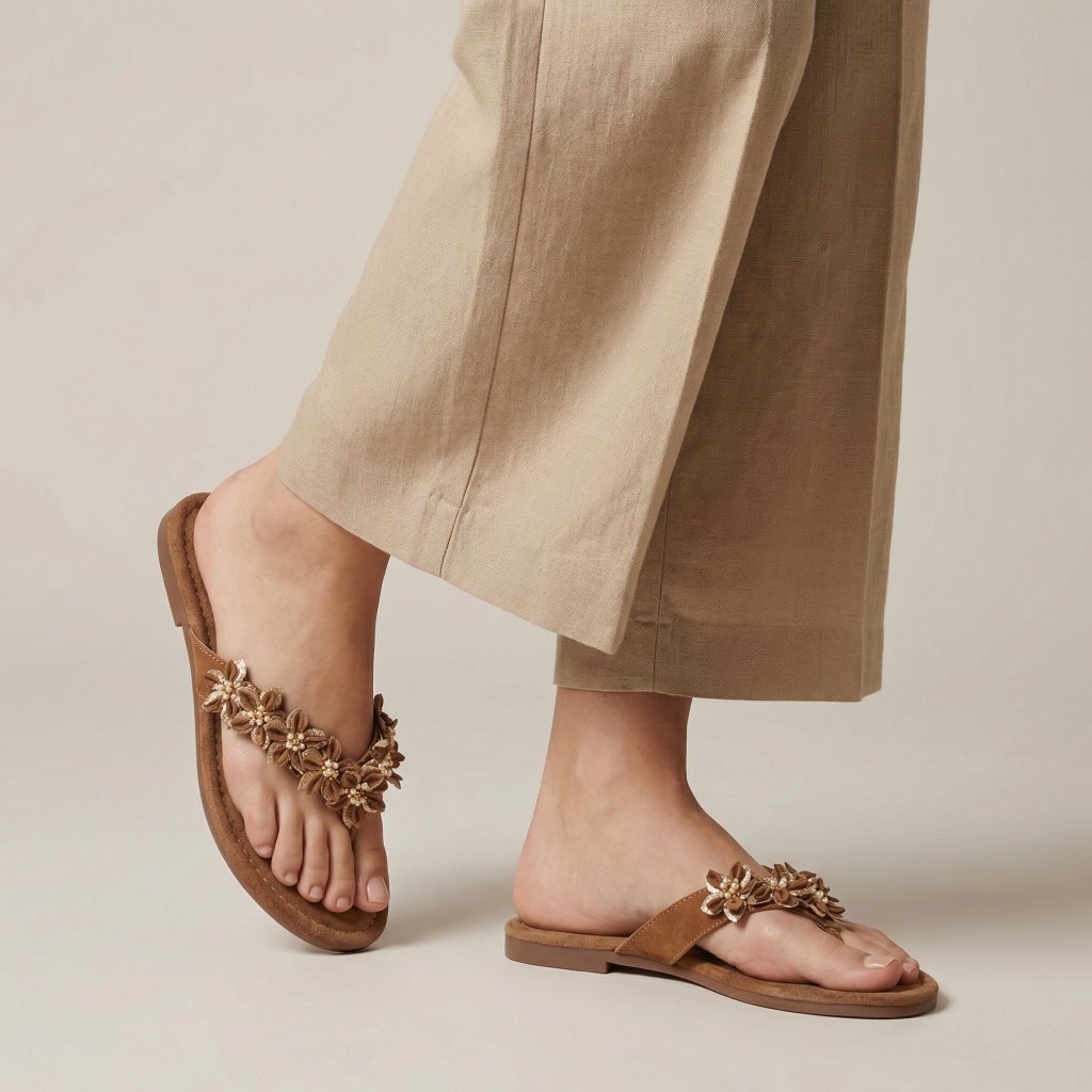Tyhle dámské hnědé nazouváky spojují pohodlí, lehkost a jemný romantický detail. Teplý hnědý odstín působí přirozeně a snadno se kombinuje – k lnu, džínům i letním šatům 🤎