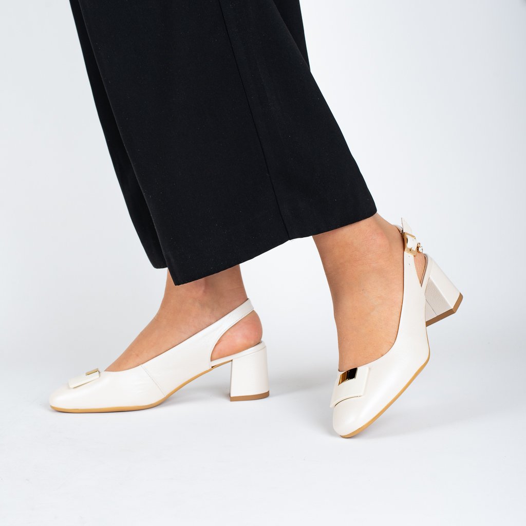 Dámské krémové kožené lodičky s otevřenou patou Letizia