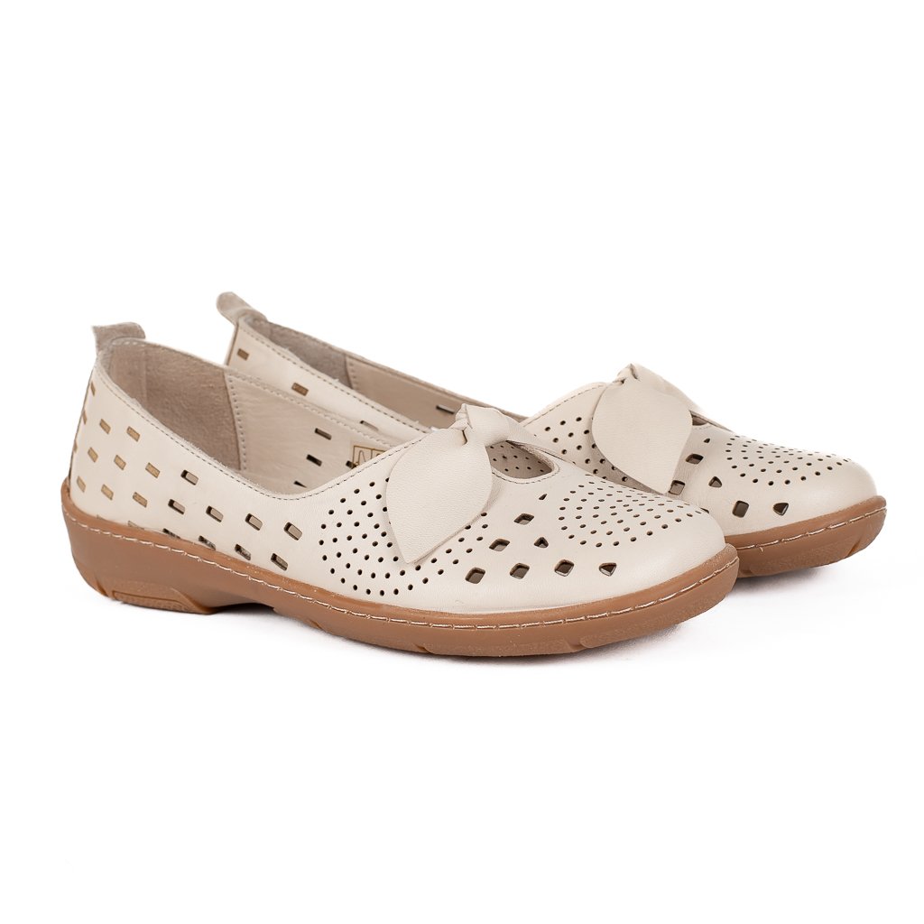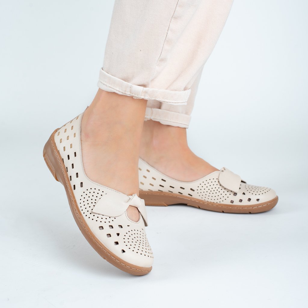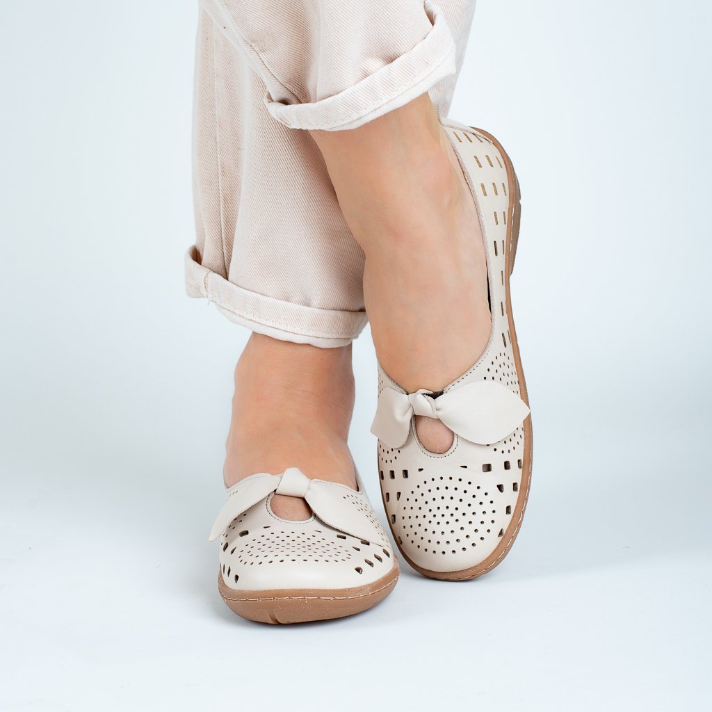 Dámské krémové kožené perforované baleríny Letizia
