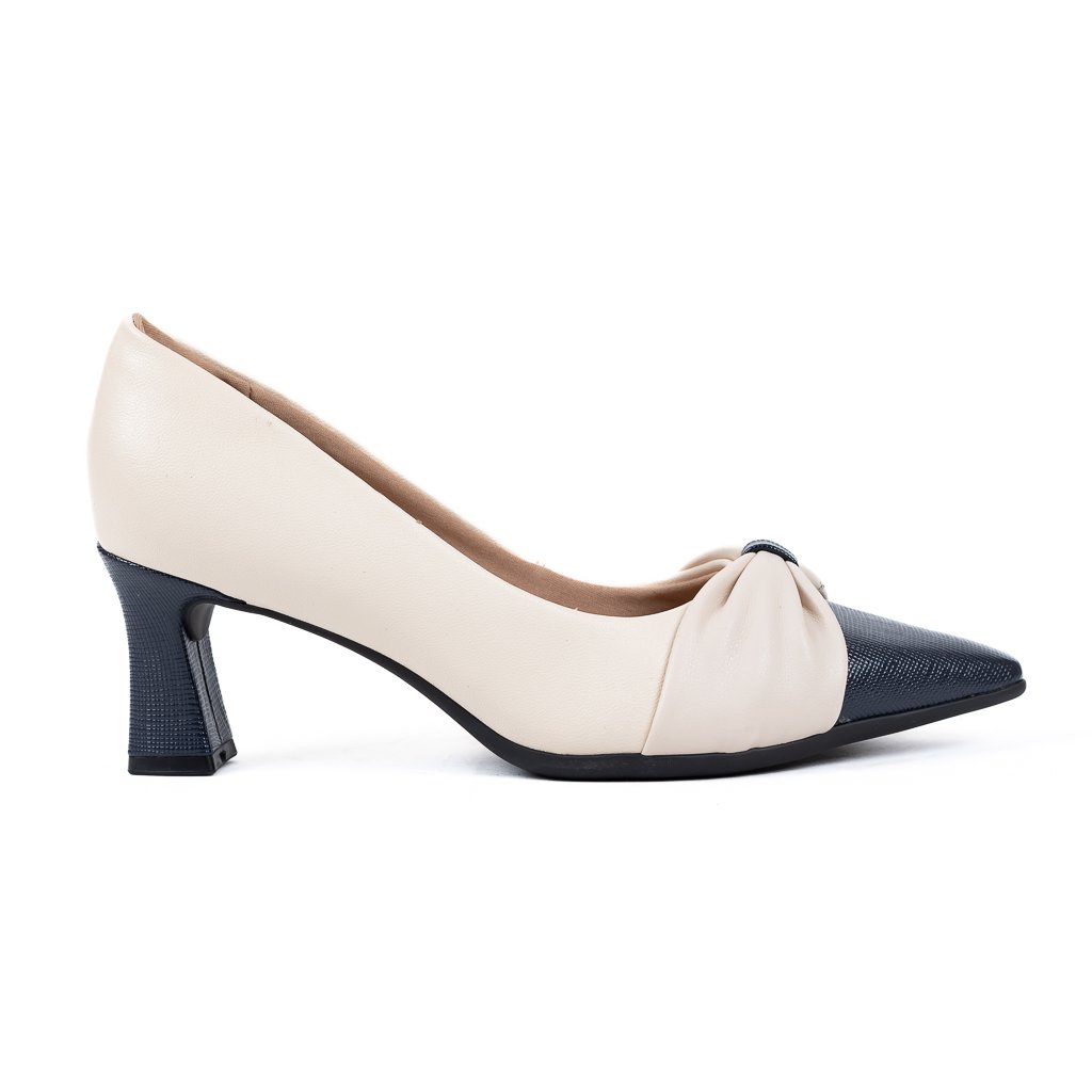Jejich jemný krémový odstín je dokonale doplněn výraznou modrou špicí, která přidává botám moderní a sofistikovaný nádech. 6 cm vysoký modrý podpatek dodává lodičkám správnou dávku šarmu, aniž byste musela obětovat komfort při nošení.