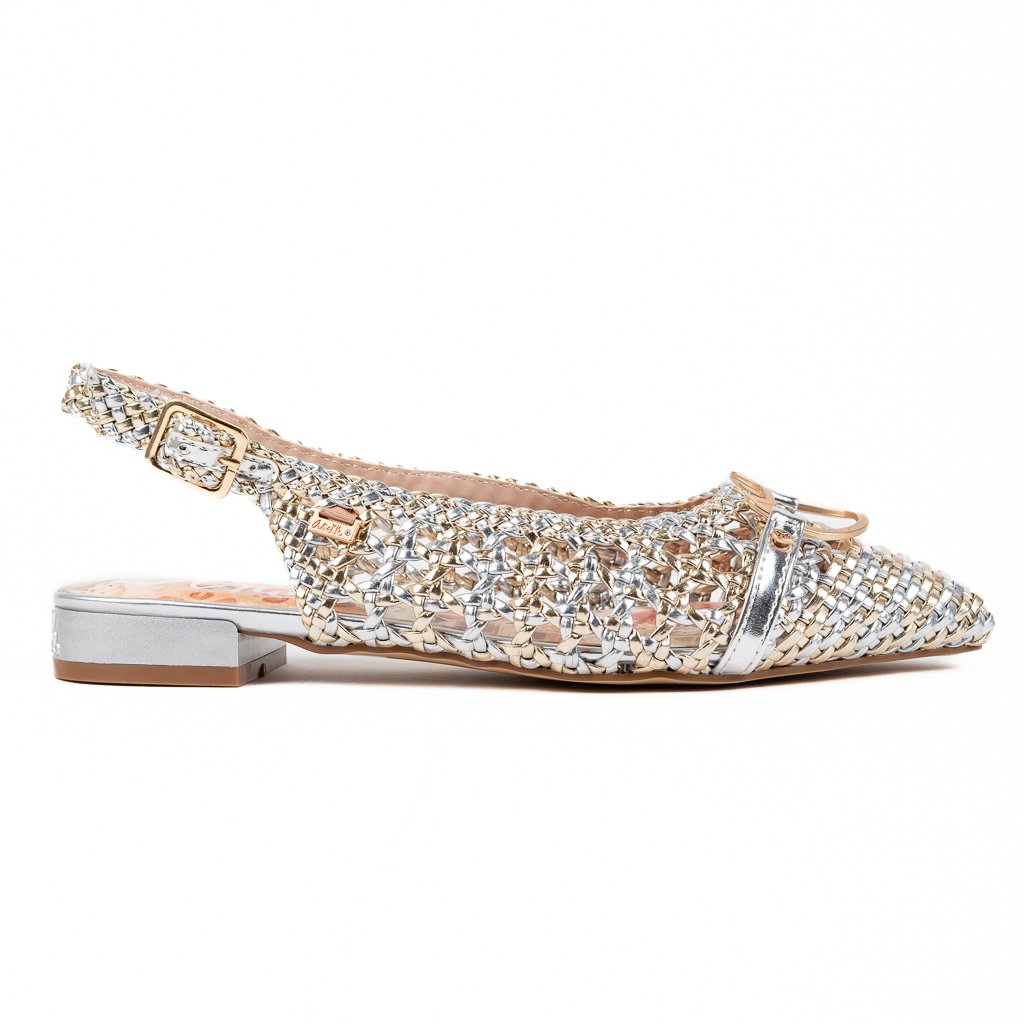 Elegantní a přitom ležérní – přesně takové jsou tyto baleríny Anekke v metalickém provedení s originálním pleteným vzorem. Ideální na teplejší dny, kdy chcete vypadat stylově, ale zároveň si užít maximální vzdušnost a pohodlí.