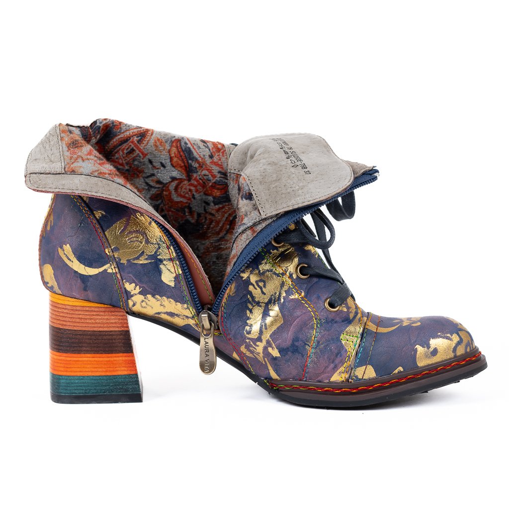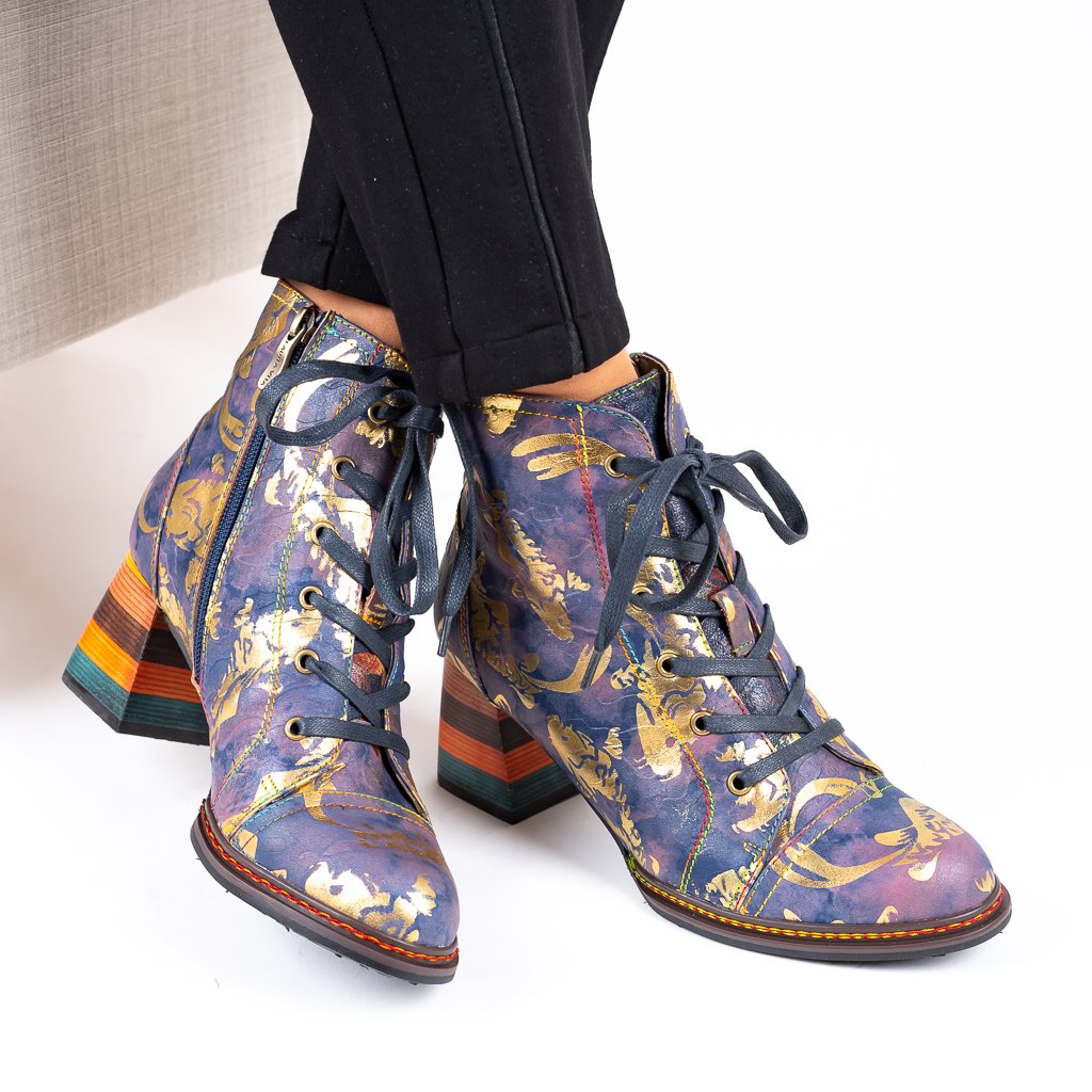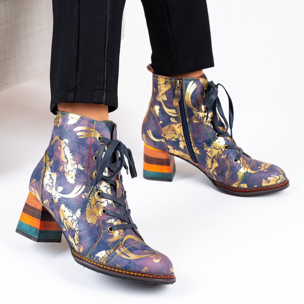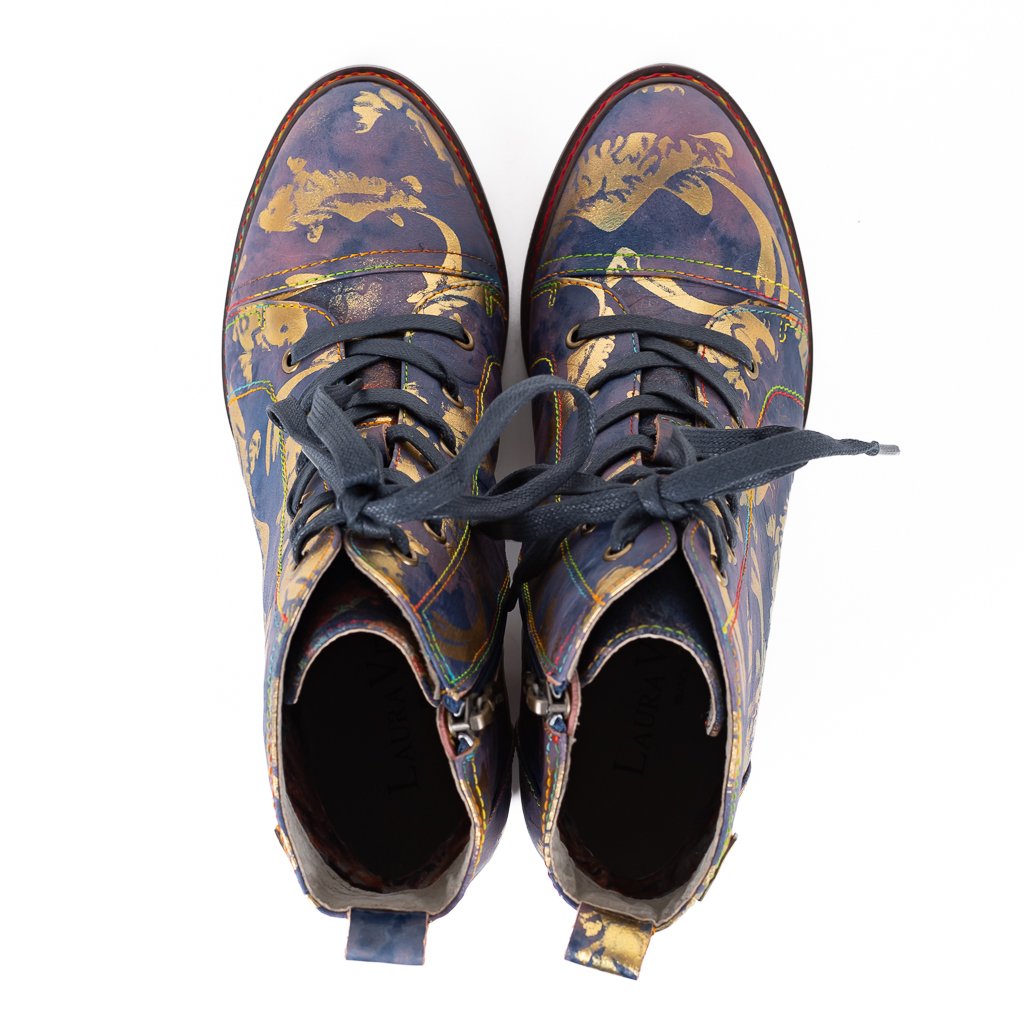 Dámské modré kotníčkové boty se zlatými rybičkami Laura Vita