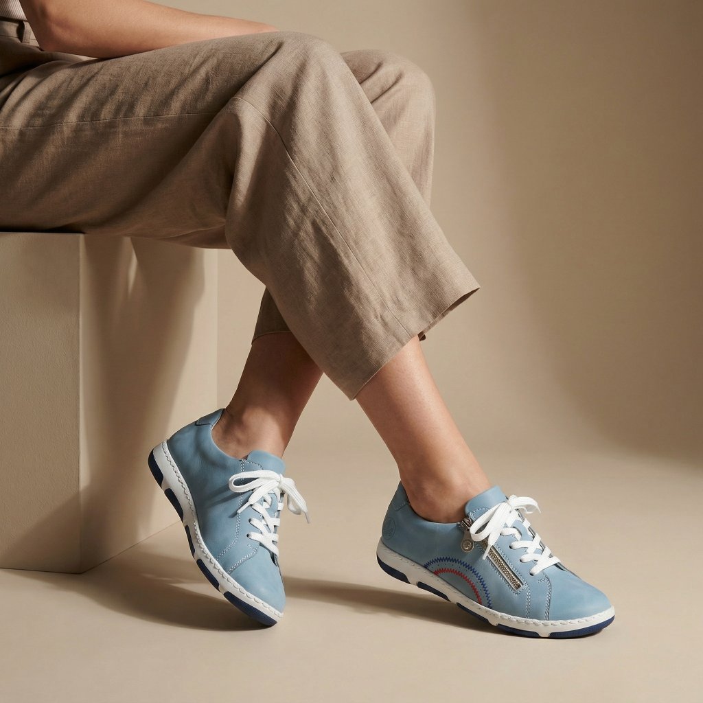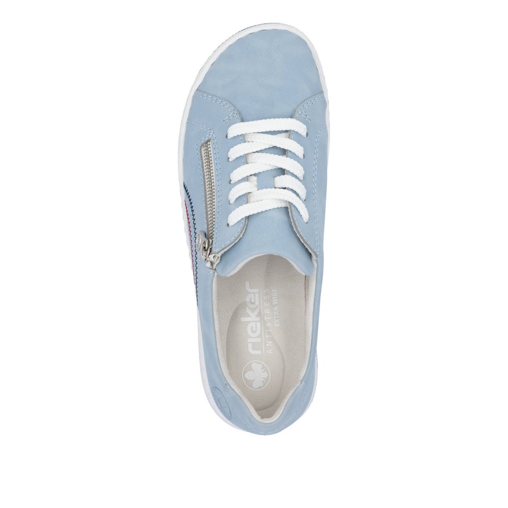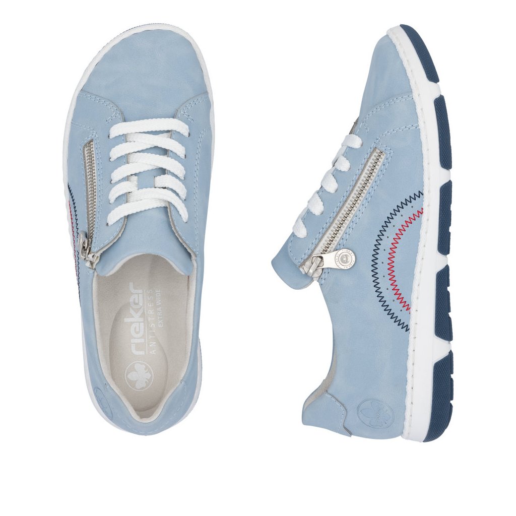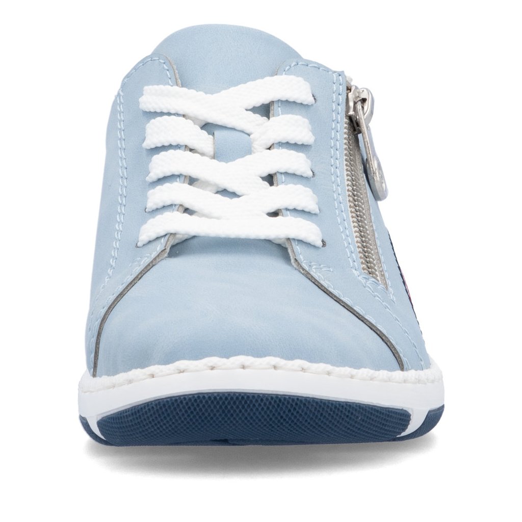 Dámské modré tenisky Rieker v komfortní šířce H jsou ideální volbou pro ženy, které hledají pohodlí bez kompromisů. Jemný modrý odstín působí svěže a snadno se kombinují. Výšivka z vnější strany boty dodá šmrnc!