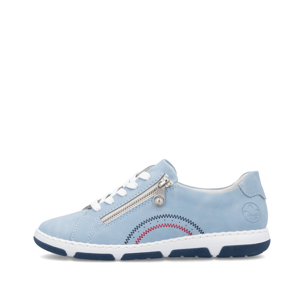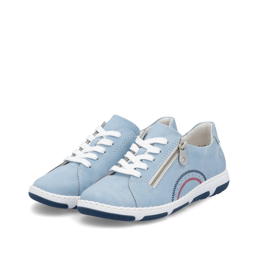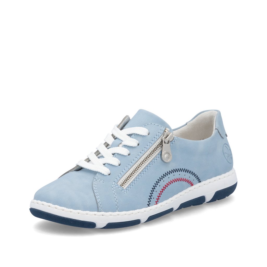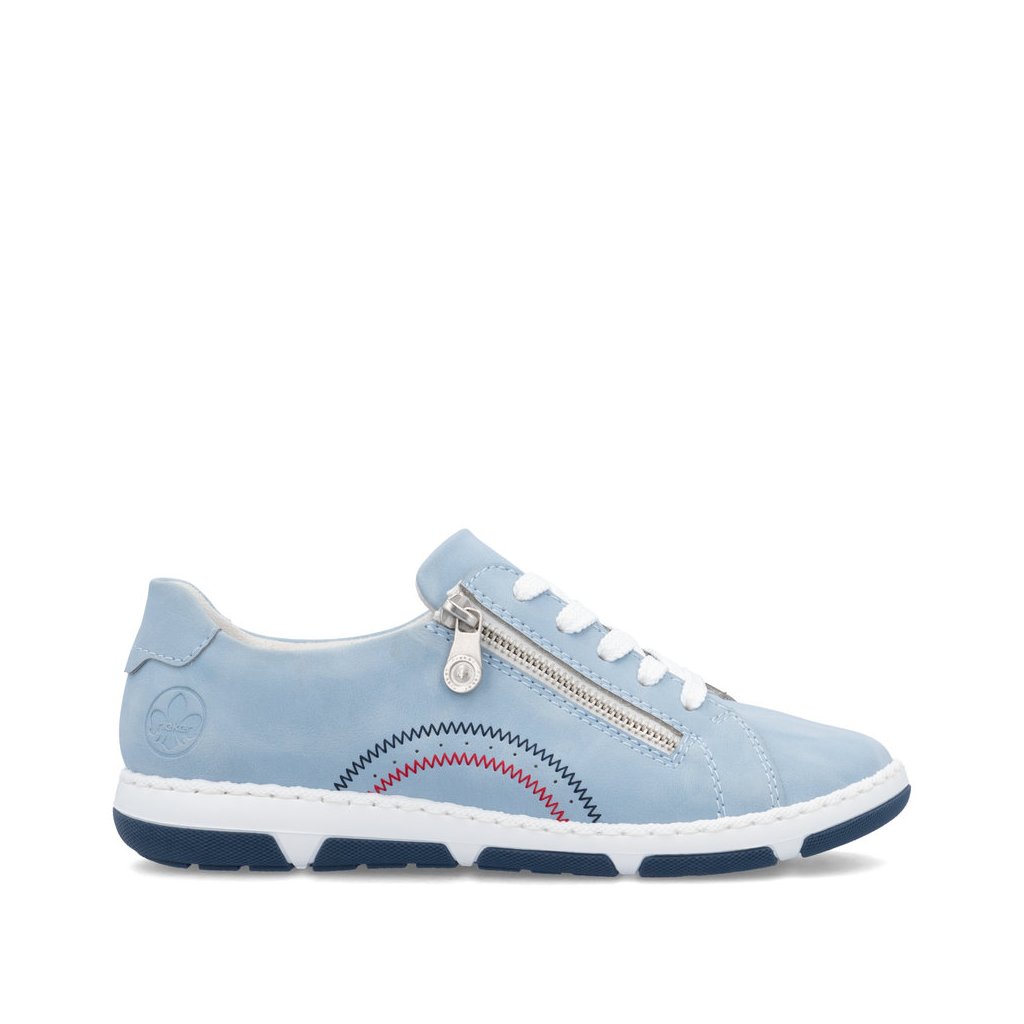 Dámské modré tenisky Rieker v komfortní šířce H jsou ideální volbou pro ženy, které hledají pohodlí bez kompromisů. Jemný modrý odstín působí svěže a snadno se kombinují. Výšivka z vnější strany boty dodá šmrnc!
