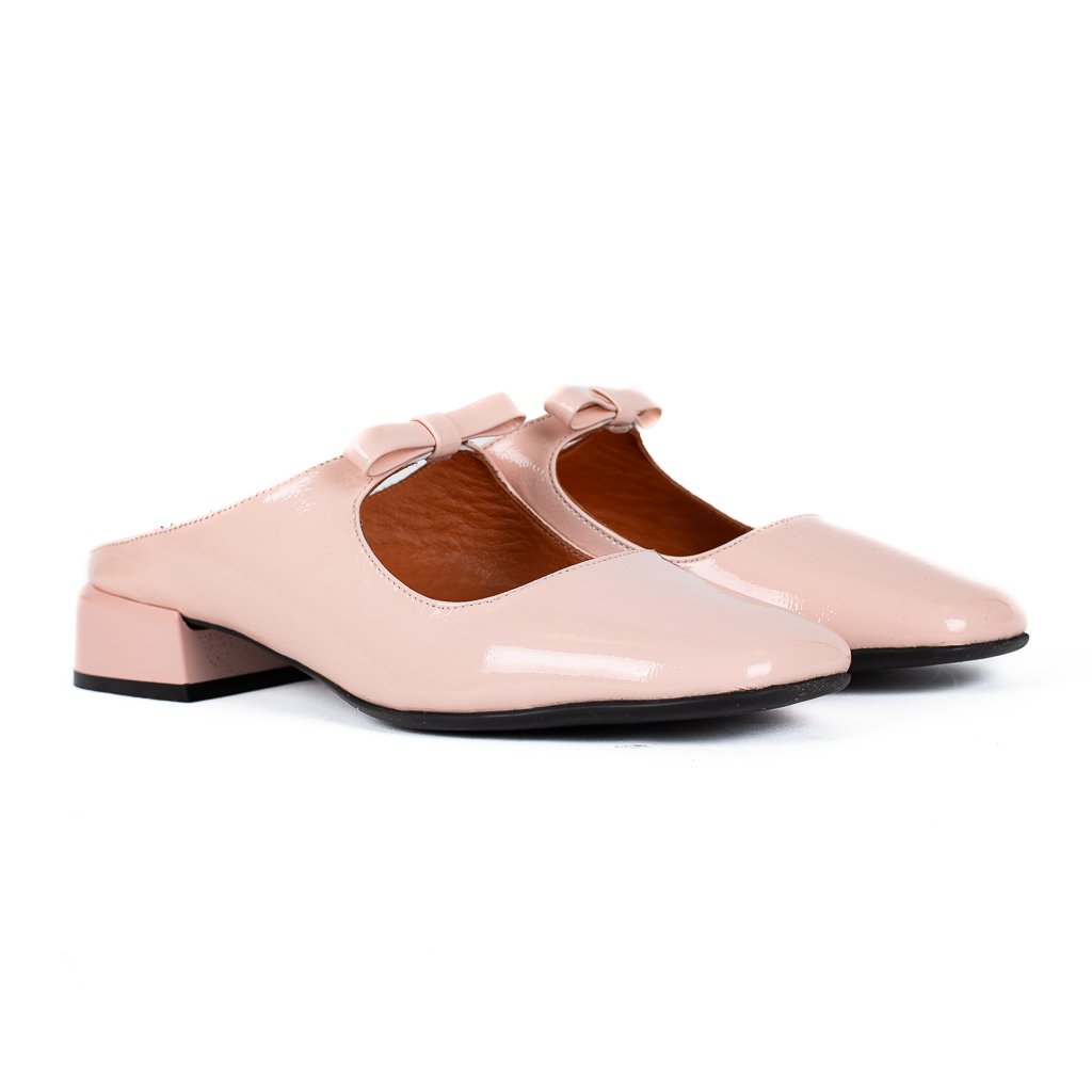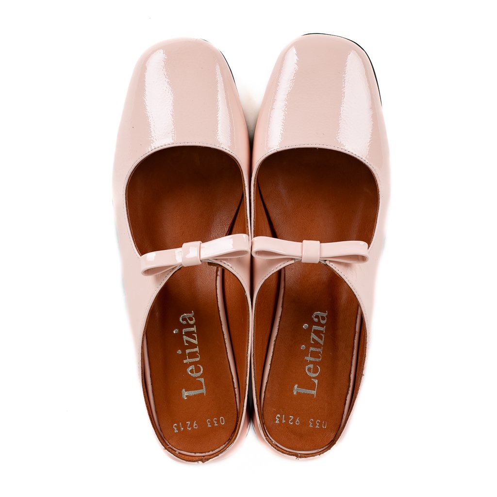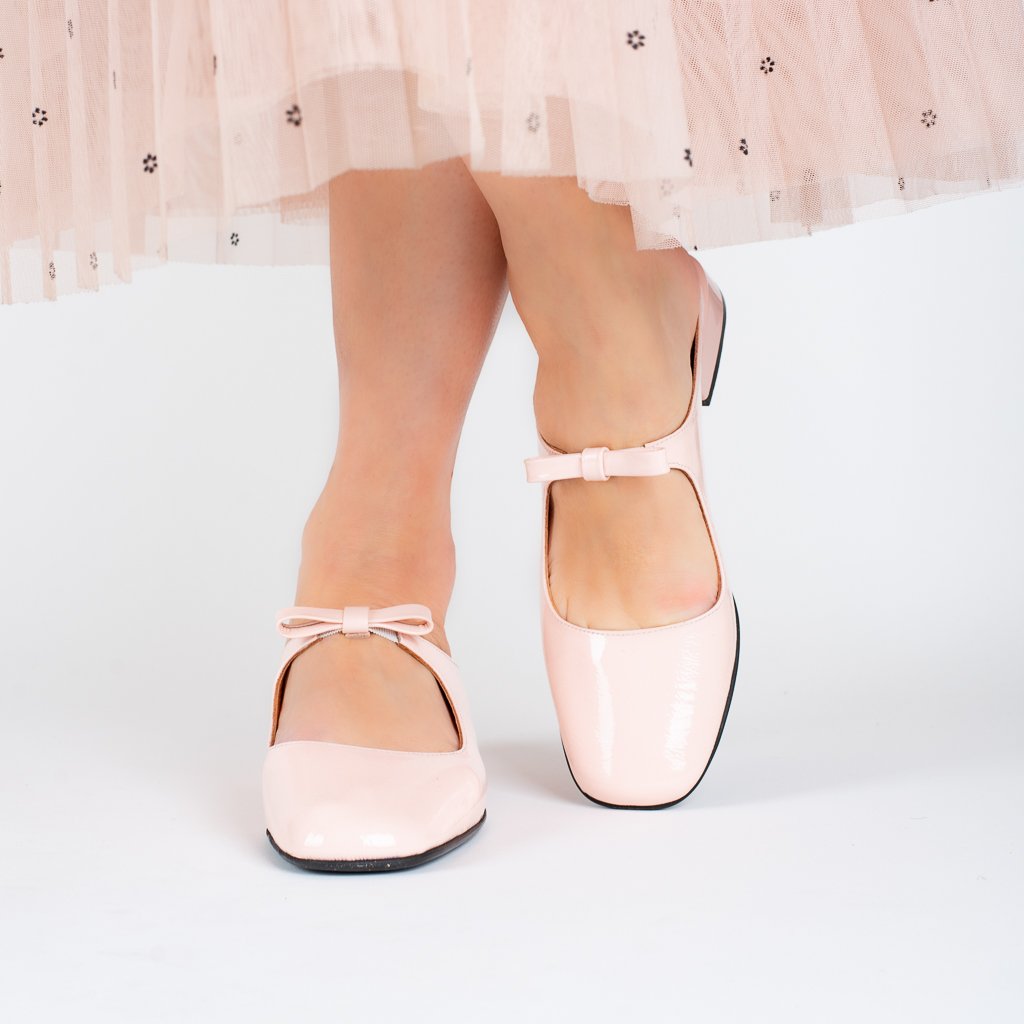 Dámské pudrové lakované Mary Jane nazouváky s mašličkou Letizia