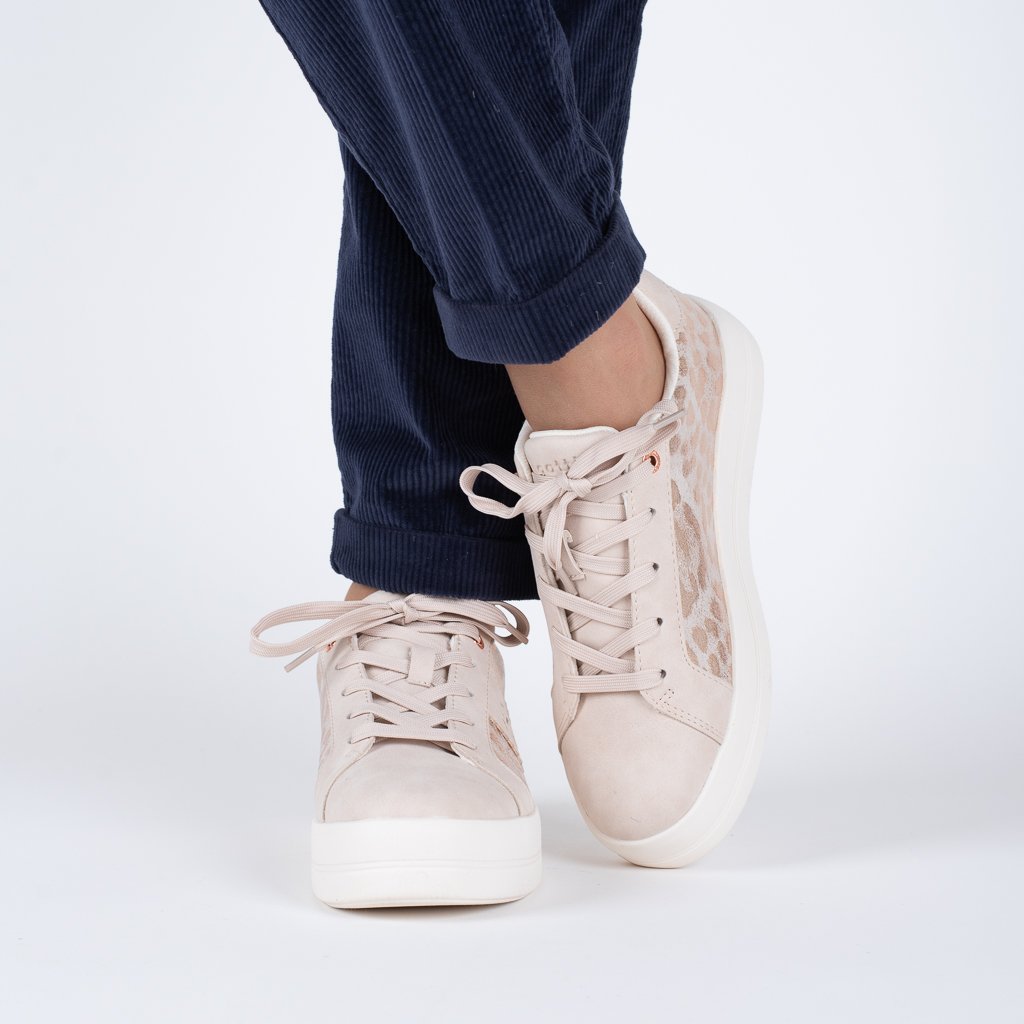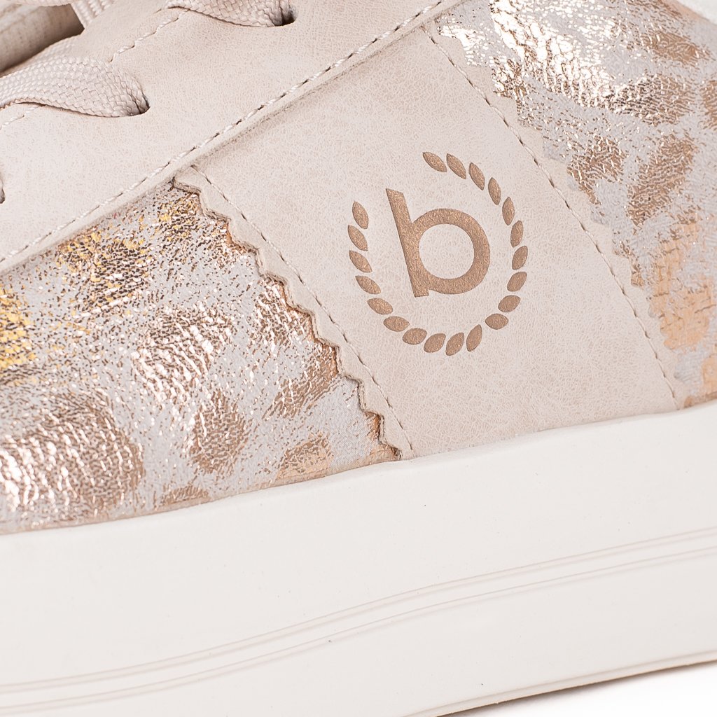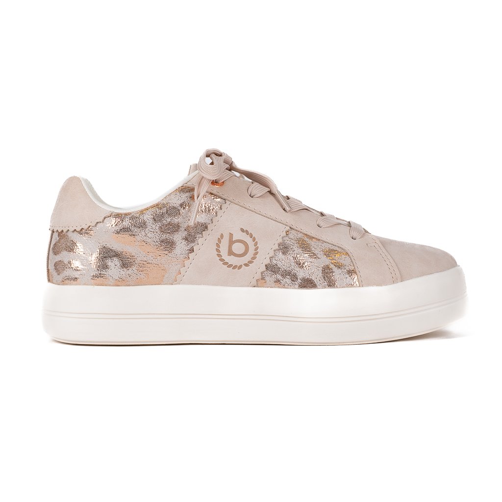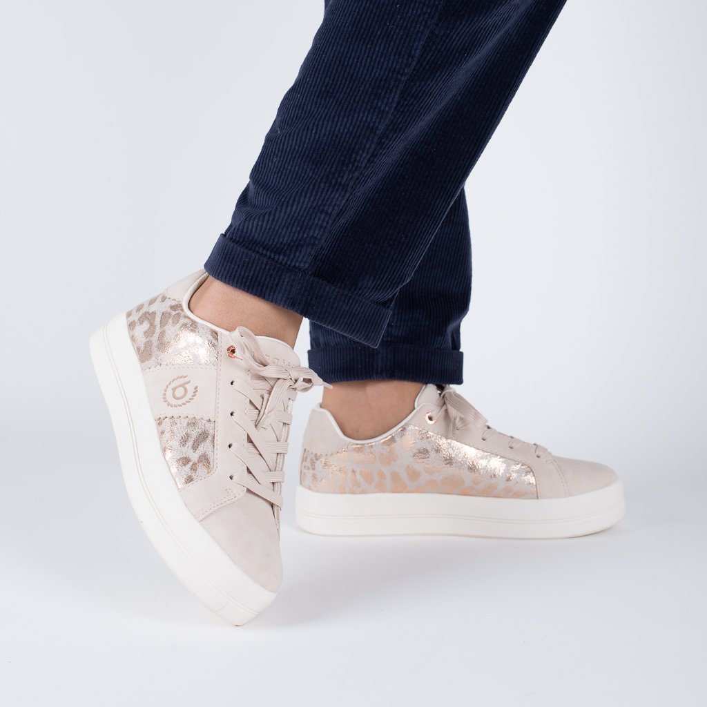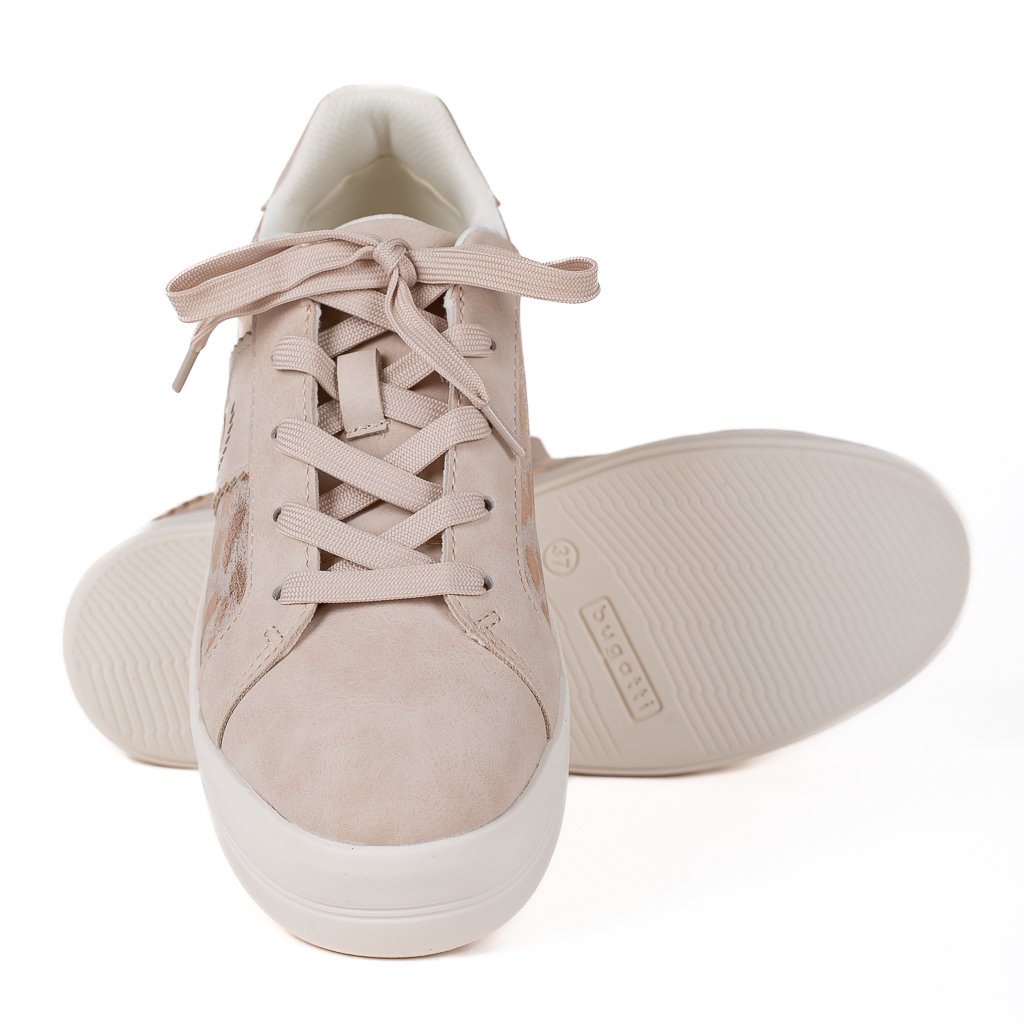 Lehké dámské tenisky Bugatti v pudrové barvě s jemnou zvířecí texturou. Textilní stélka, podešev 3 cm, pohodlí na každý den.