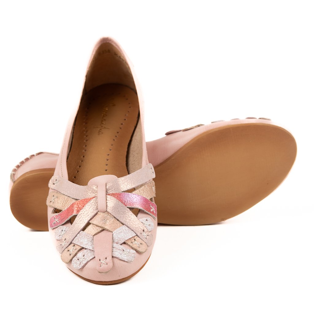 Jejich svršek z kvalitní kůže je doplněn nádherným proplétaným designem v odstínech růžové a béžové, který dodá vašemu outfitu jemný romantický nádech.
