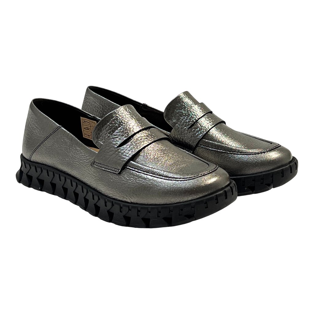 Dámské stříbrné metalické kožené mokasíny Letizia