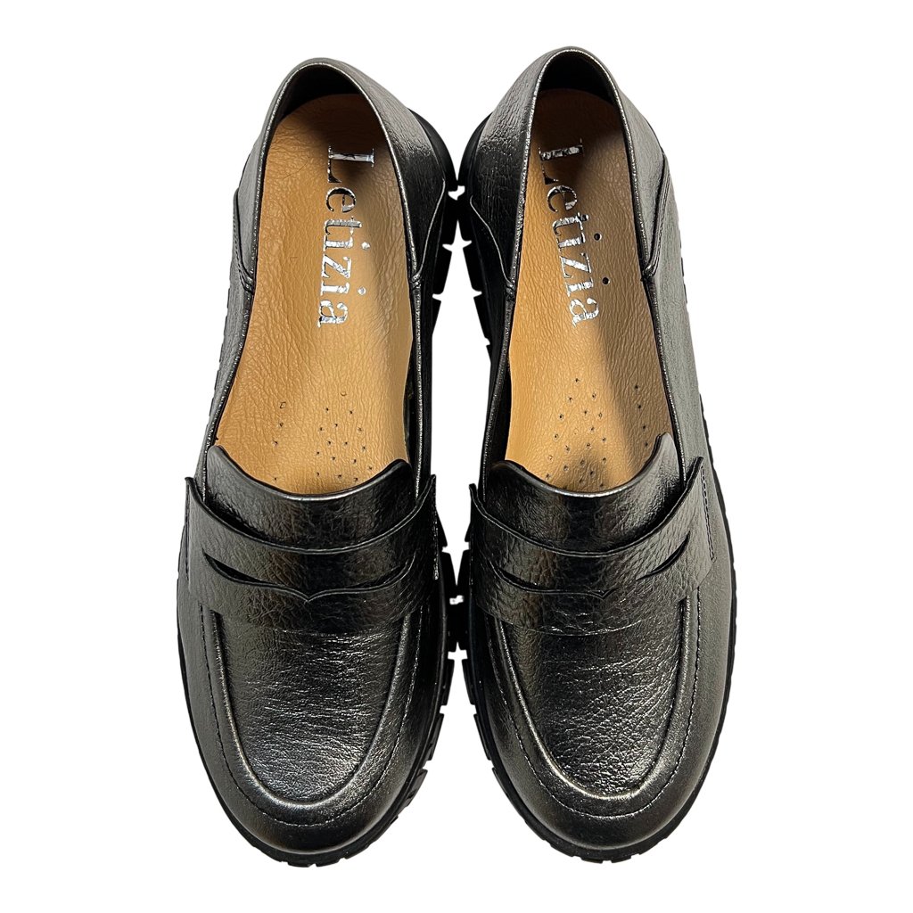 Dámské kožené mokasíny Letizia ve stříbrném metalickém provedení jsou ideální volbou pro ženy, které chtějí klasický tvar v moderním pojetí. Jemně lesklý povrch dodává botám svěží, lehce módní nádech, ale stále zůstává snadno kombinovatelný s každodenním šatníkem. ✨