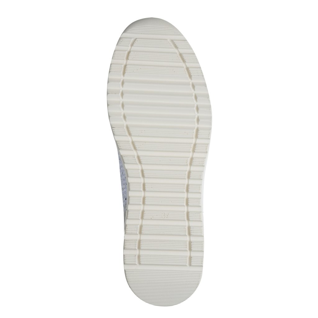 Stříbrné nazouvací tenisky Marco Tozzi mají lehký sportovně-elegantní vzhled, jež doplňuje jemný třpyt kamínků, který při chůzi krásně chytá světlo, ale nikdy nepůsobí přehnaně. ✨