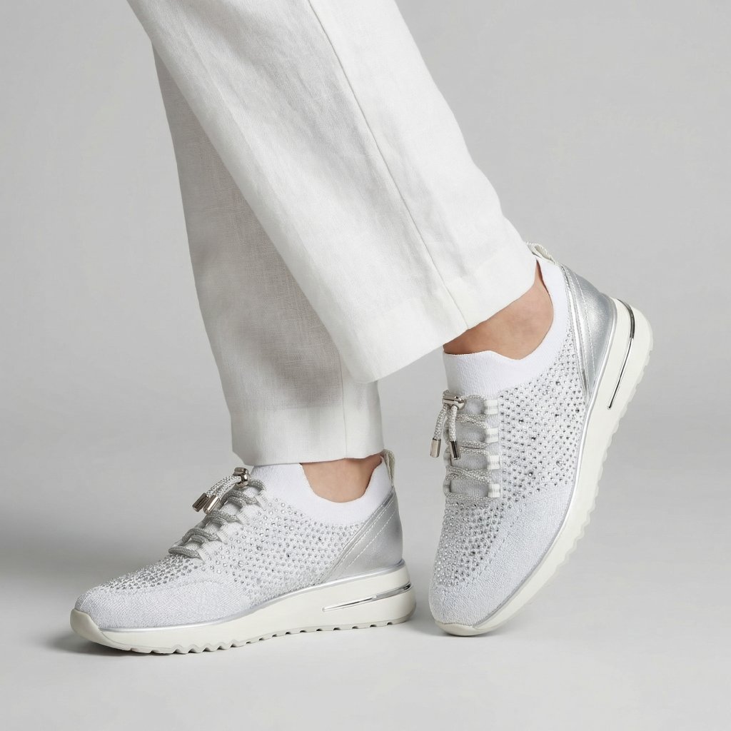 Celek působí moderně, čistě a žensky. Tyhle stříbrné tenisky s kamínky jsou ideální, pokud chcete sportovní pohodlí, ale nechcete se vzdát jemného lesku a elegance.