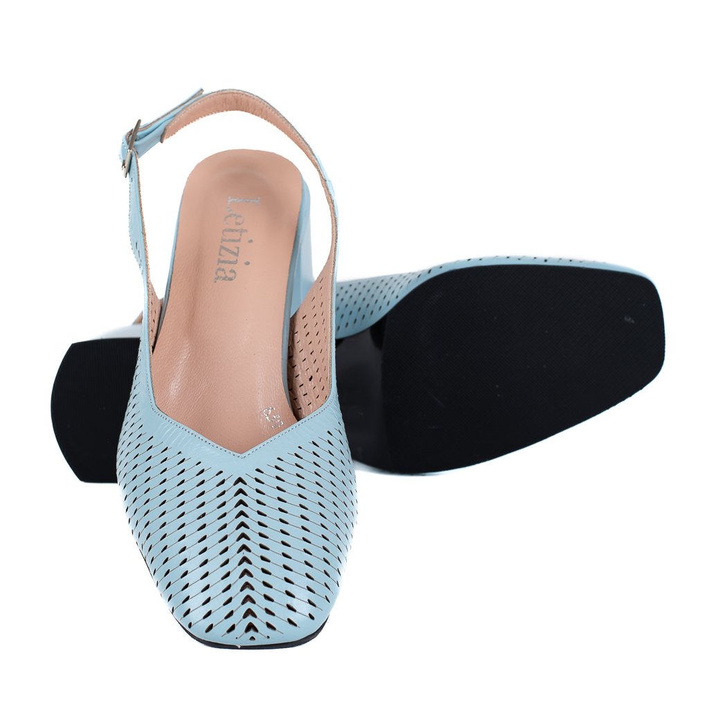 Dámské světle modré perforované lodičky s otevřenou patou Letizia
