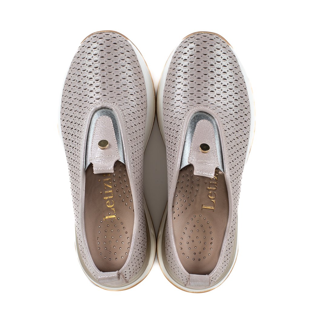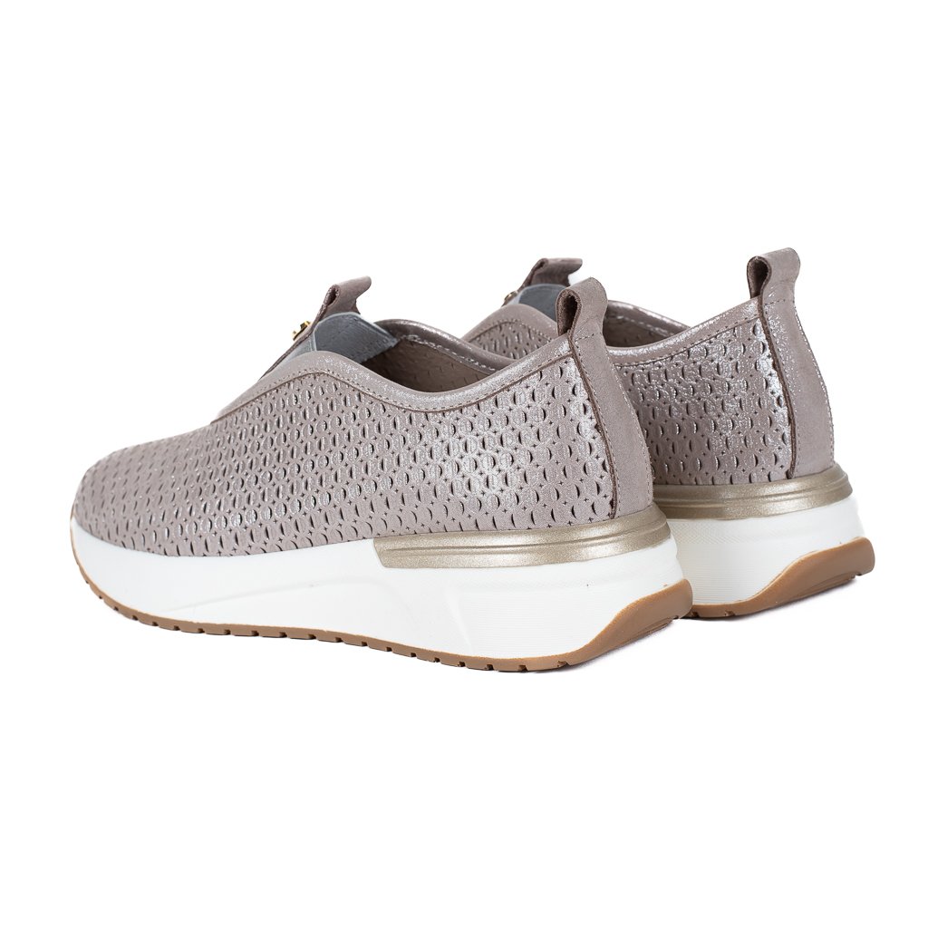 Taupe perforované kožené slip-on tenisky Letizia jsou ideální volbou pro ženy, které chtějí maximální pohodlí v elegantním, nenápadně zajímavém provedení. 👟✨ Teplý taupe odstín působí přirozeně, jemně a velmi snadno se kombinuje – hodí se k béžovým, bílým i tmavším tónům a krásně zapadne do jarního i letního šatníku.
