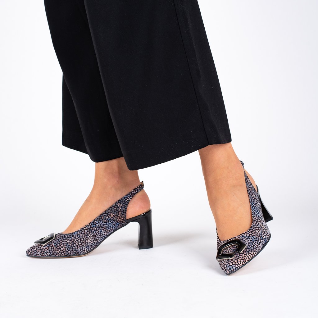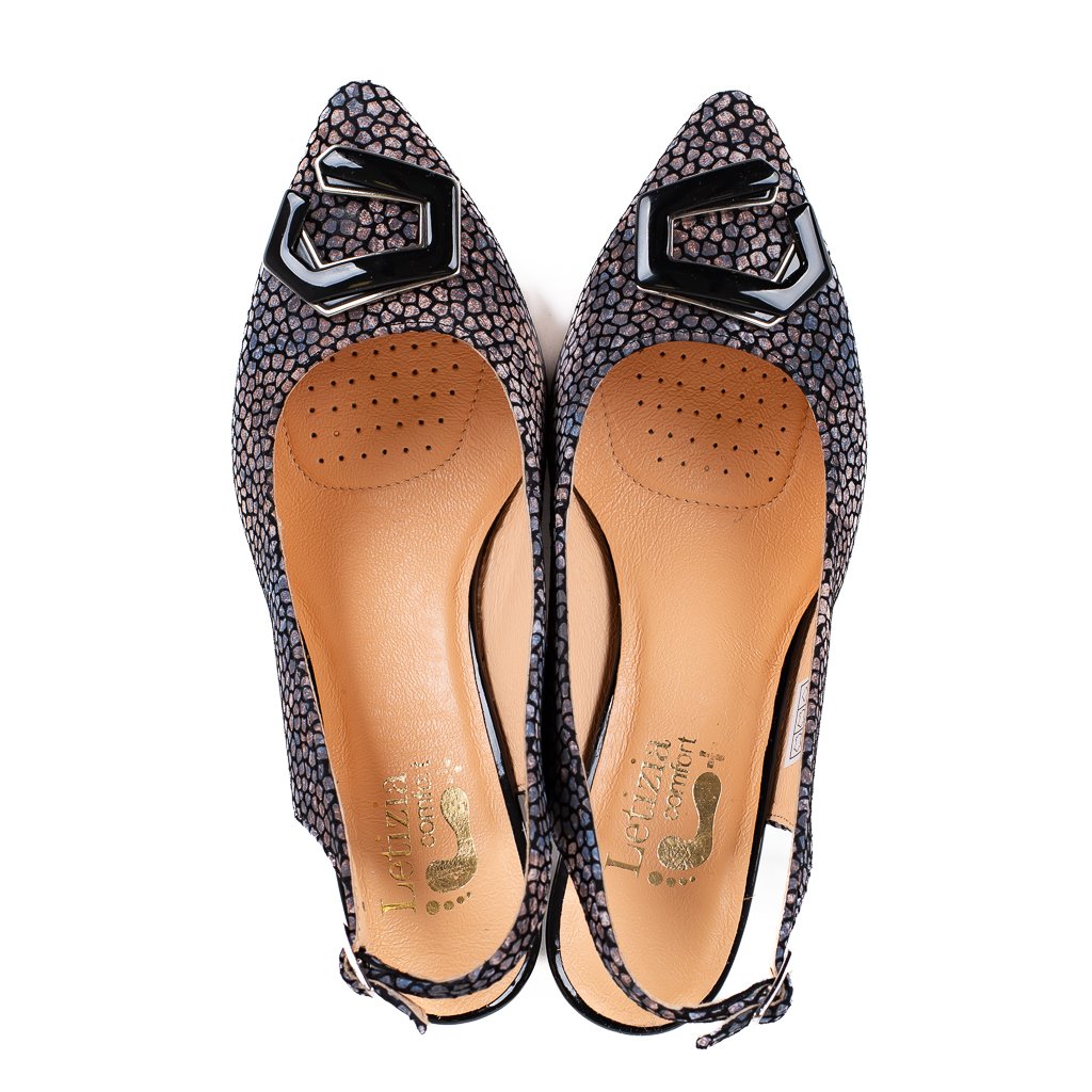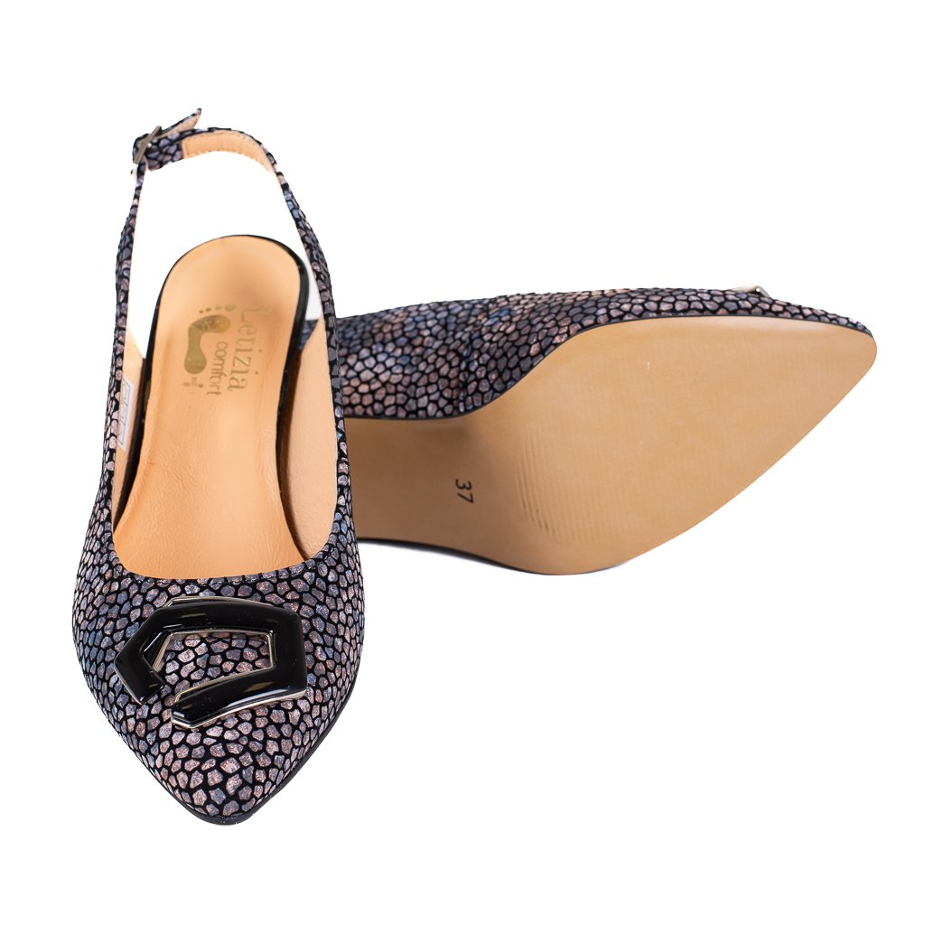 Dámské kožené lodičky Letizia s otevřenou patou zaujmou na první pohled propracovaným svrškem a jemnou, ale nepřehlédnutelnou barevností.
