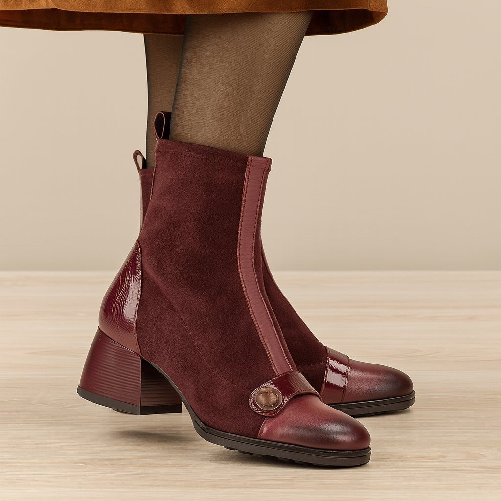 Vneste do svého šatníku španělskou eleganci i během chladnějších měsíců. 👢 Vínové kotníkové boty Hispanitaskombinují luxusní vzhled s technologií, která promění každý krok v zážitek. Stylový svršek tvoří hladká kůže a pružný semiš, které se přirozeně přizpůsobí noze a zaujmou na první pohled.