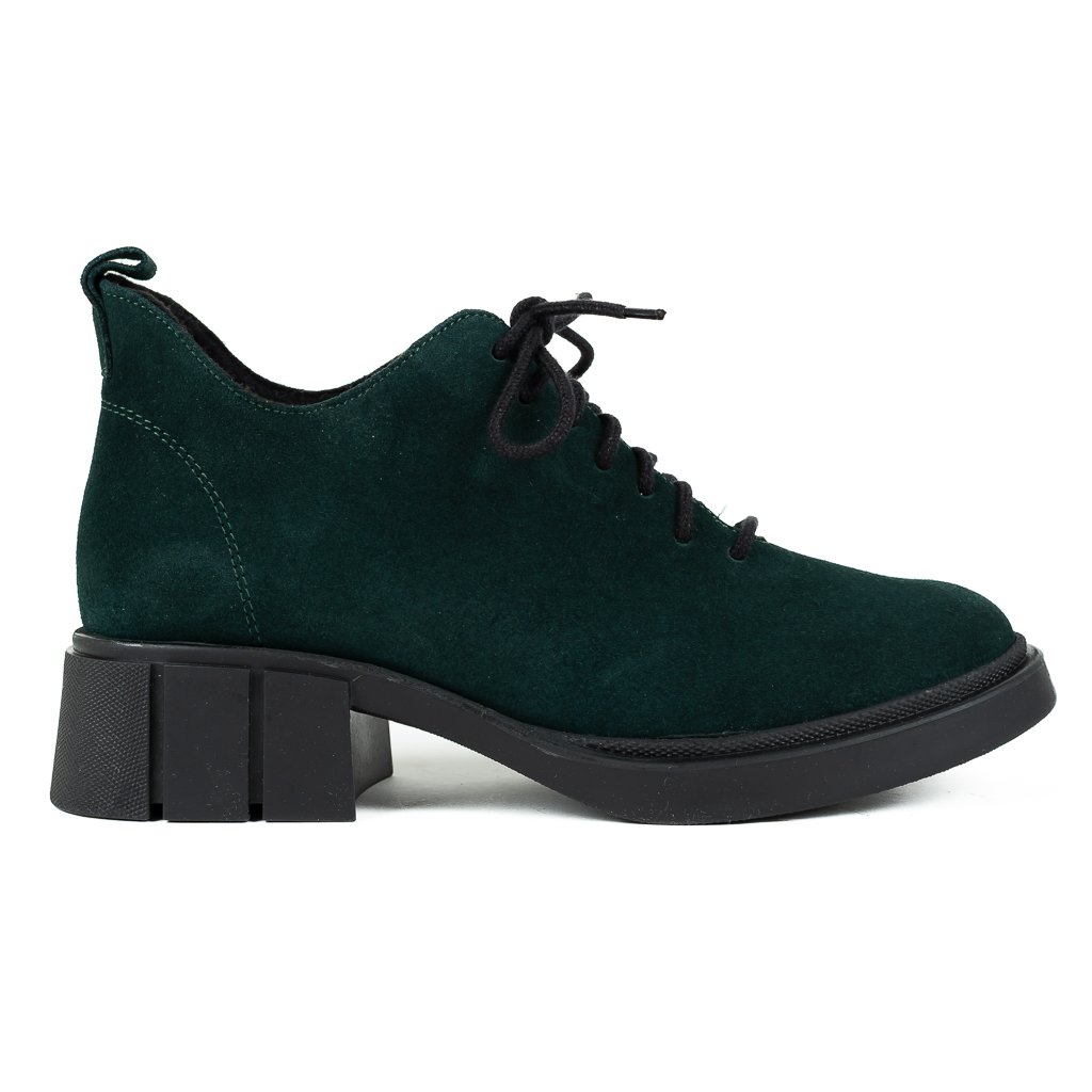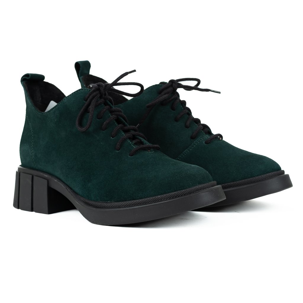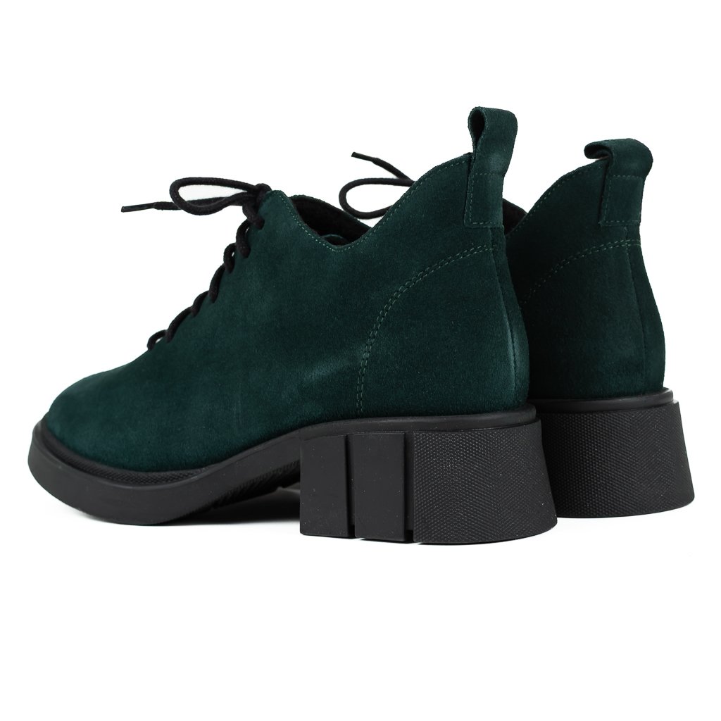 Dámské zelené šněrovací polobotky z broušené kůže na širokém podpatku