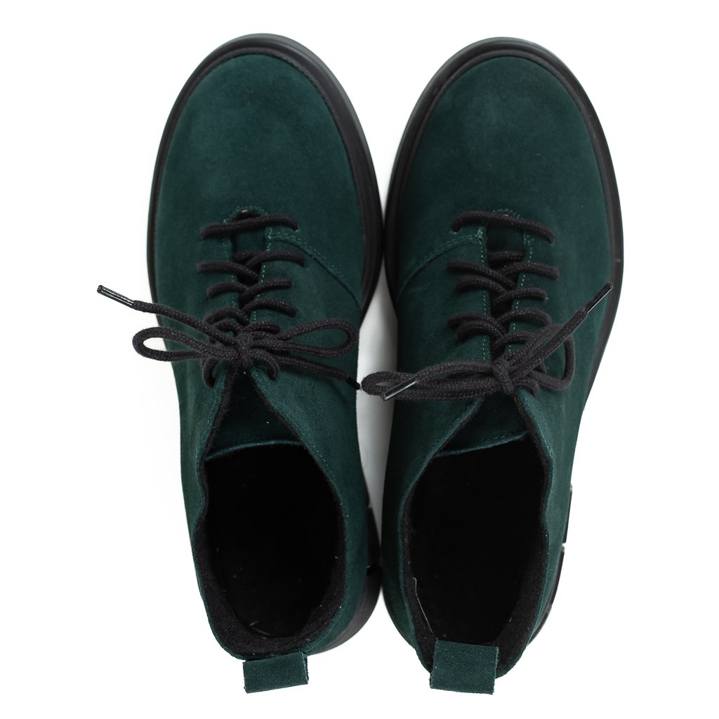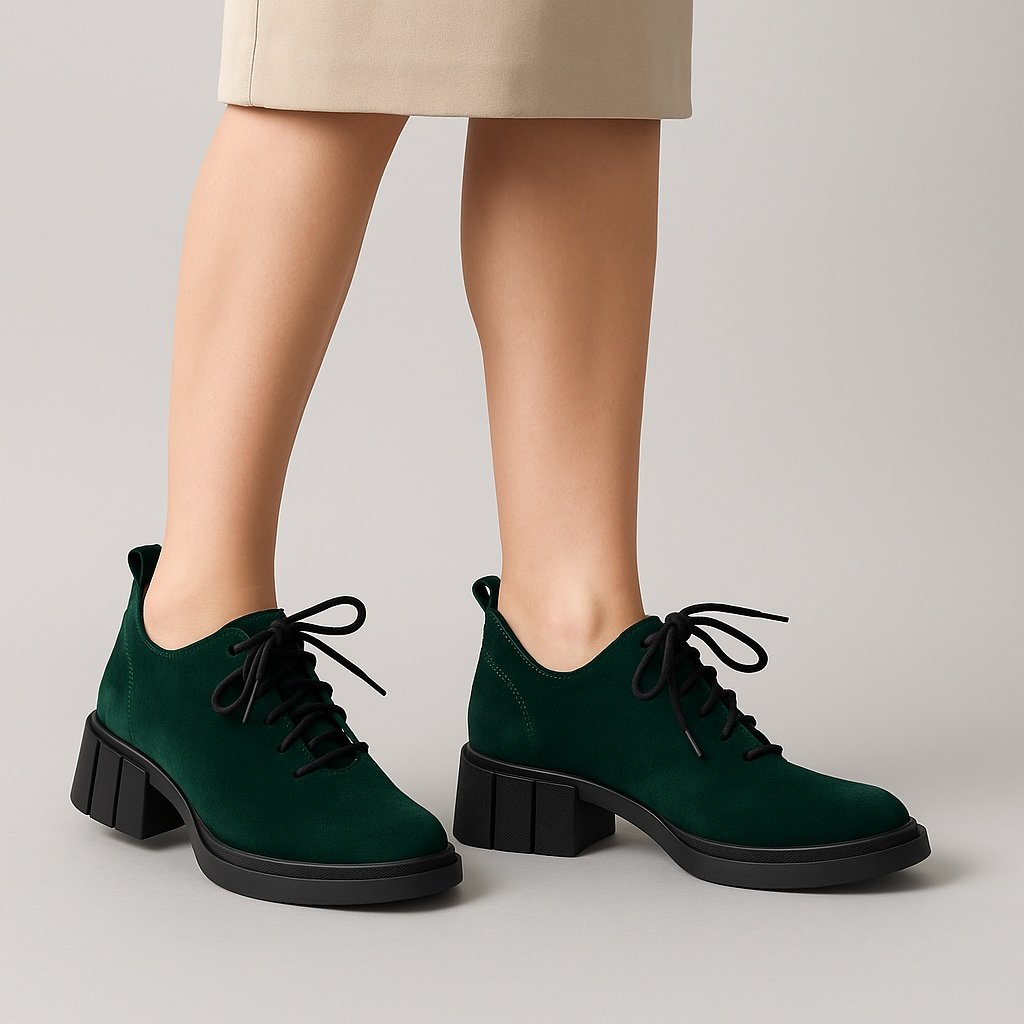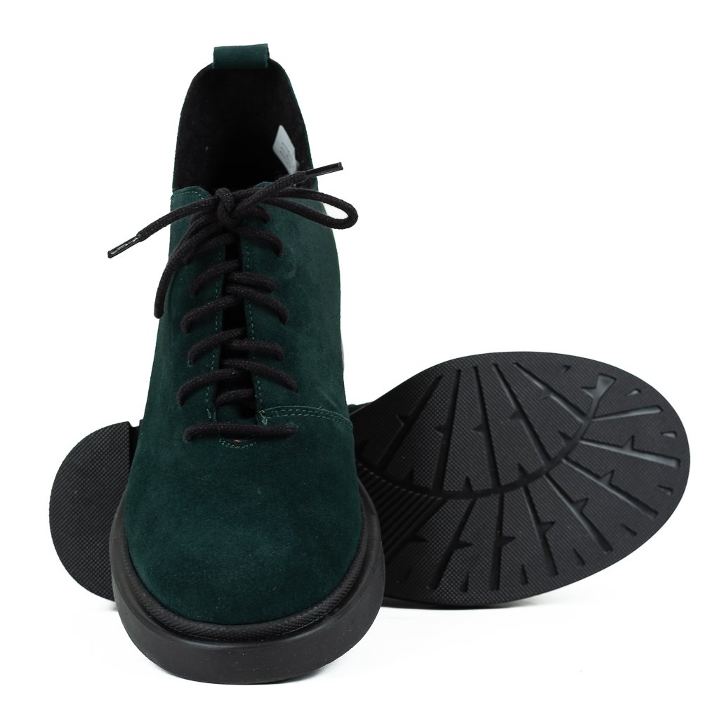 Dámské zelené šněrovací polobotky z broušené kůže na širokém podpatku