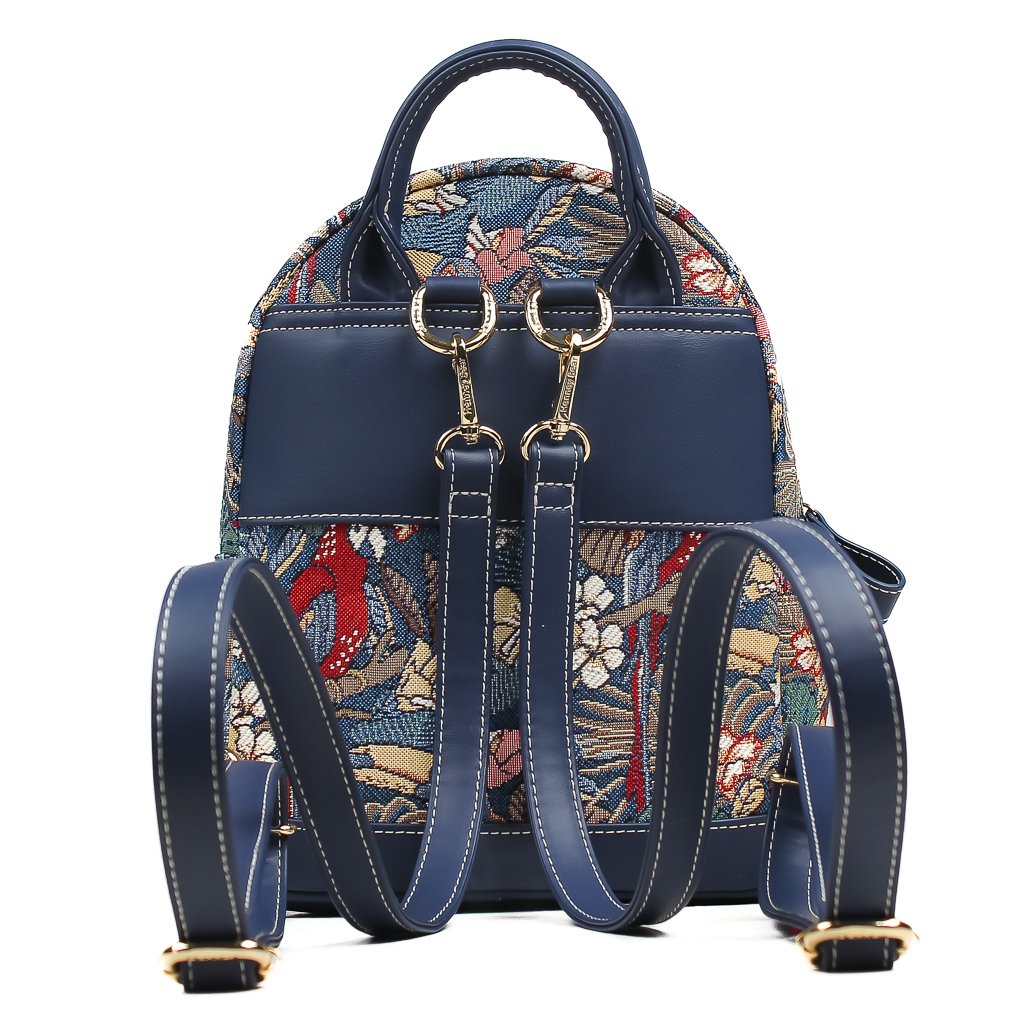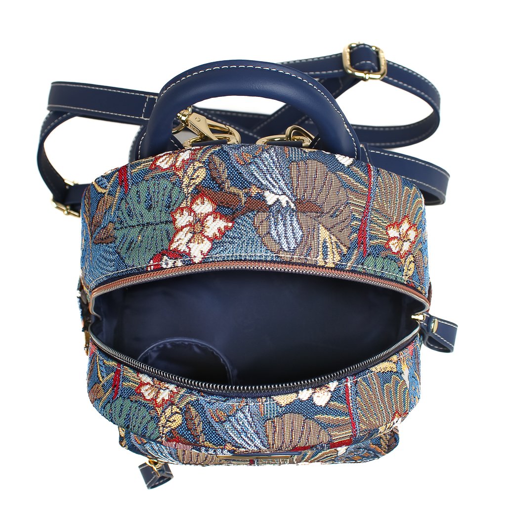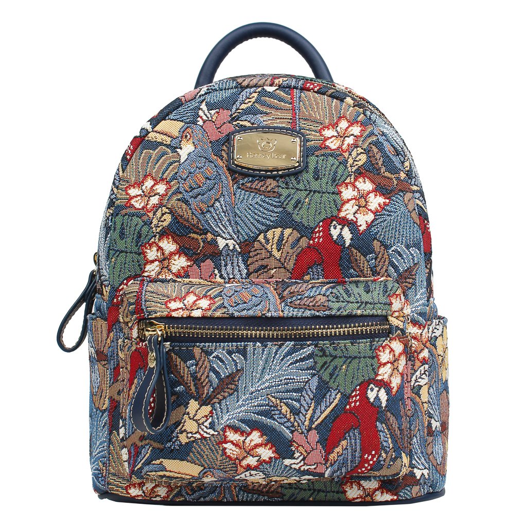 Vzor Parrot Song je oslavou života, přírody a exotických detailů. Gobelín s pestrými papoušky, květy a tropickými listy působí jako ilustrovaná pohlednice z džungle – plná energie, ale i ladnosti. Tento batoh tě bude doprovázet všude tam, kde chceš být praktická, ale neztratit šmrnc.