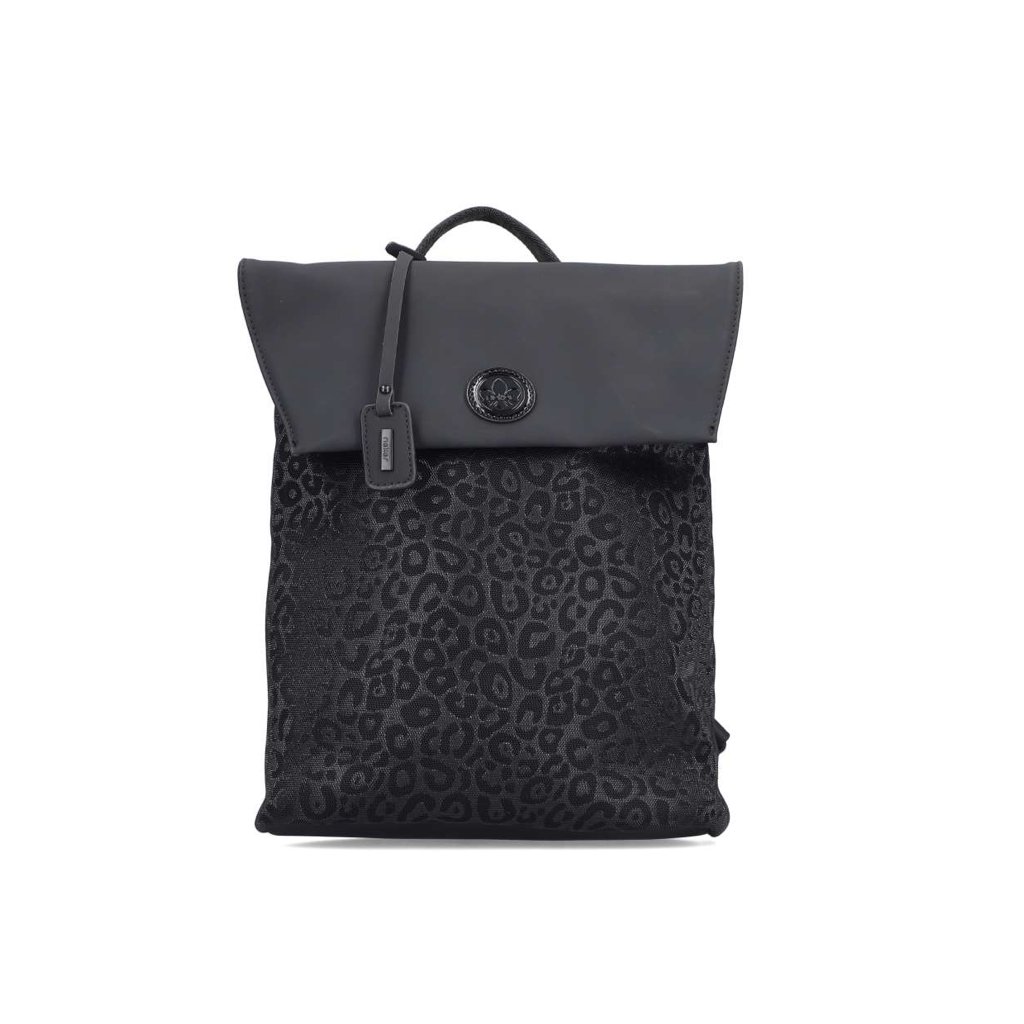 Stylový a praktický černý batoh Rieker s leopardím motivem – ideální do města i na cesty