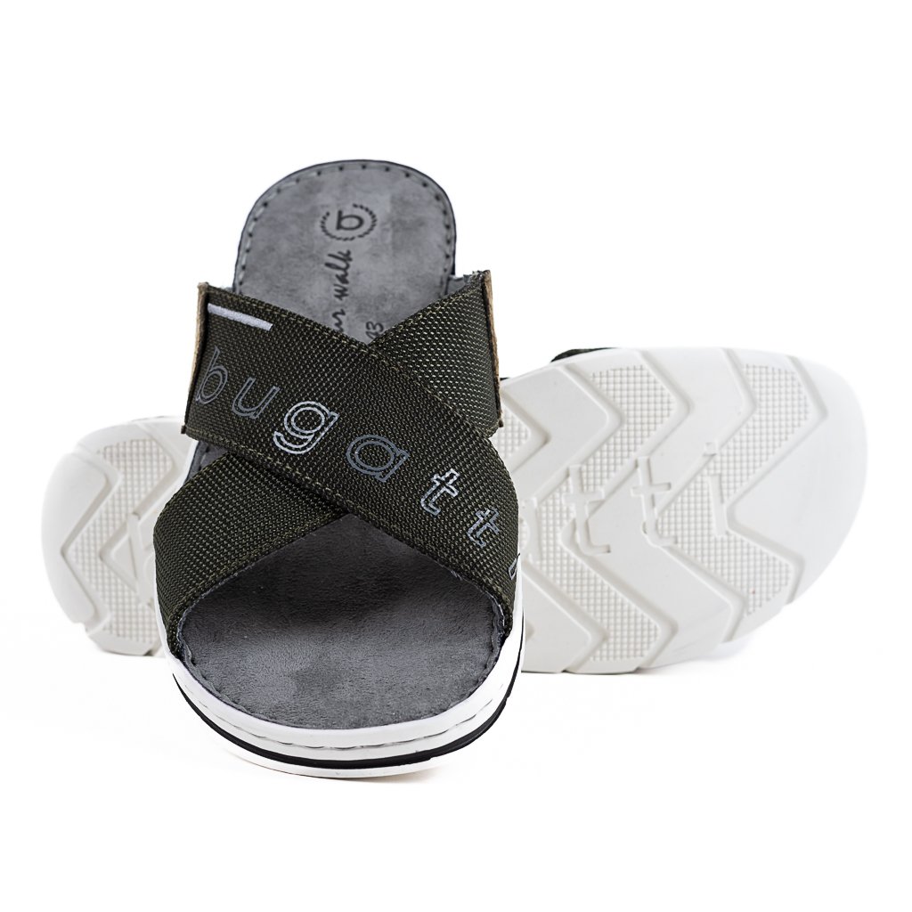 Pánské pohodlné nazouváky tmavě zelené barvy od německé značky Bugatti. Ať půjdeš k vodě nebo na "jedno", budeš mít stabilní krok.